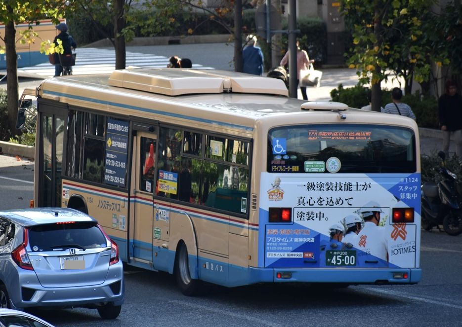 2019年10月31日 ◆プロタイムズ(2)(阪急バス) カテゴリ:阪急バス(神戸ナンバー) by wrpgu 西宮で見かけた、プロタイムズ阪神中央の新しいデザインのリアラッピング 以前は大阪建設のリアラッピングだった車両です 大阪建設はまだたくさん走っています プロタイムズ阪神中央、最初のデザイン
