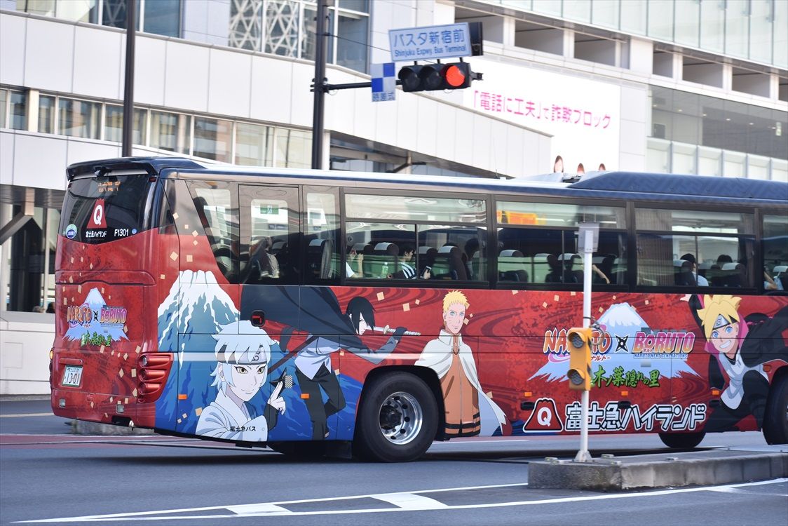 2019年10月29日 NARUTO BORUTO 木ノ葉隠れの里(富士急バス) カテゴリ:甲信越 ラッピング車 by wrpgu 富士急ハイランドのNARUTOのラッピングバスを2種類見かけました カラー以外にも、デザインが異なっています
