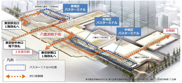 東京駅のバスターミナル、数年後に色々変わるみたいで。八重洲で工事があちこちで始まっているのは、それなのか