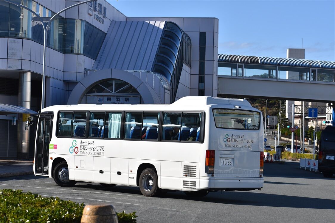 2021年01月29日 グランドエクシブ鳥羽(送迎バス) カテゴリ:〇ホテル・旅館・温泉送迎バス by wrpgu 鳥羽駅で見かけた、会員制リゾートホテル「グランドエクシブ鳥羽」の送迎バス 新しめの白いバスで、白ナンバーか。と思っていましたが、よく見たら 伊勢志摩のご当地デザインのナンバーでした おまけ 鳥羽シーサイドホテル 潮路亭
