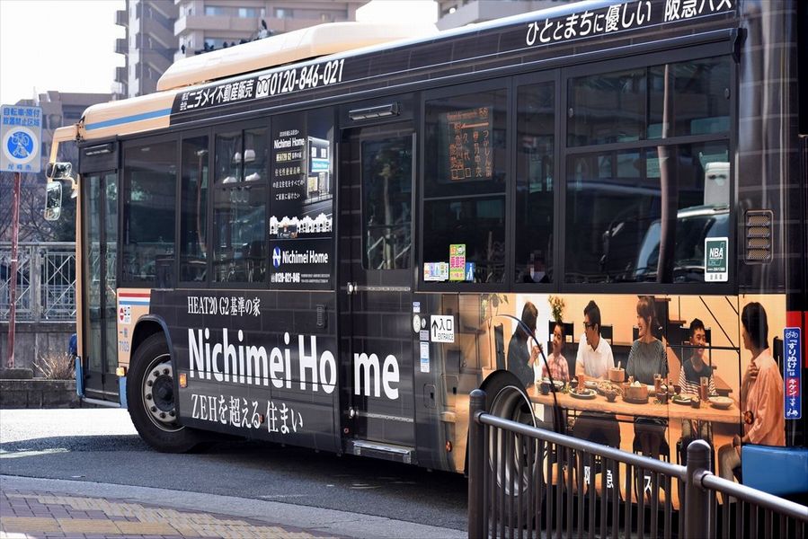 昨秋に博多で見かけた、不動産のラッピングバス
