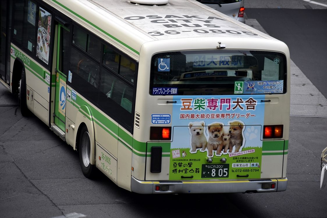 2022年06月27日 ◆豆柴宝山荘(大阪シティバス) カテゴリ:大阪シティバス(大型/後ラッピング) by wrpgu 中津の805が、豆柴宝山荘のリアラッピングに変わりました 先週はまだタイセイだったと思います 豆柴は、中津の大型車で右面ラッピングバスがあり、今年に中型車でも増車されましたが、それに続いての広告(いずれも健在) タイセイも、中津と井高野の右面ラッピングはまだ残っていました