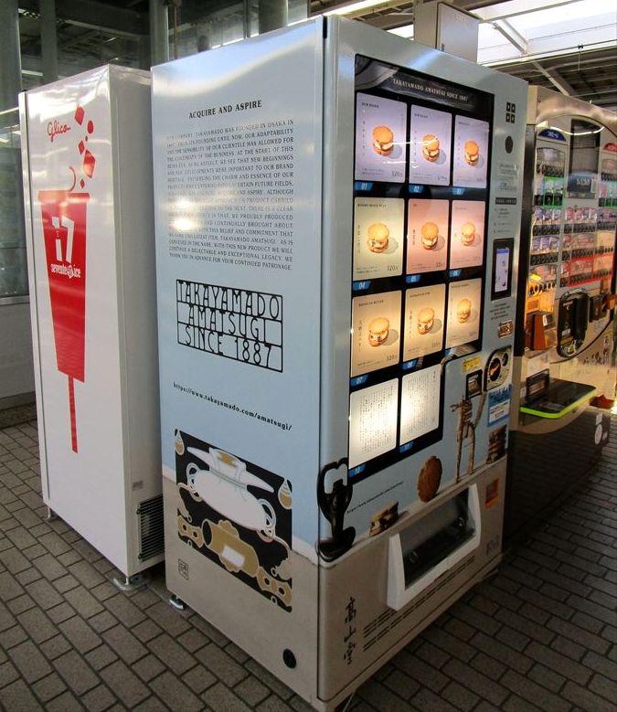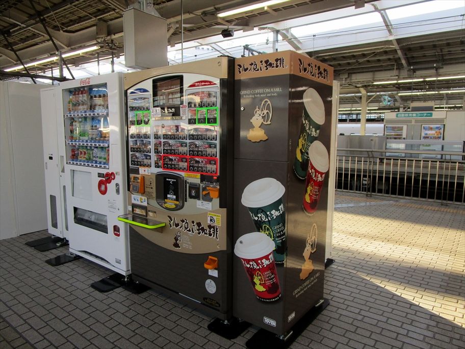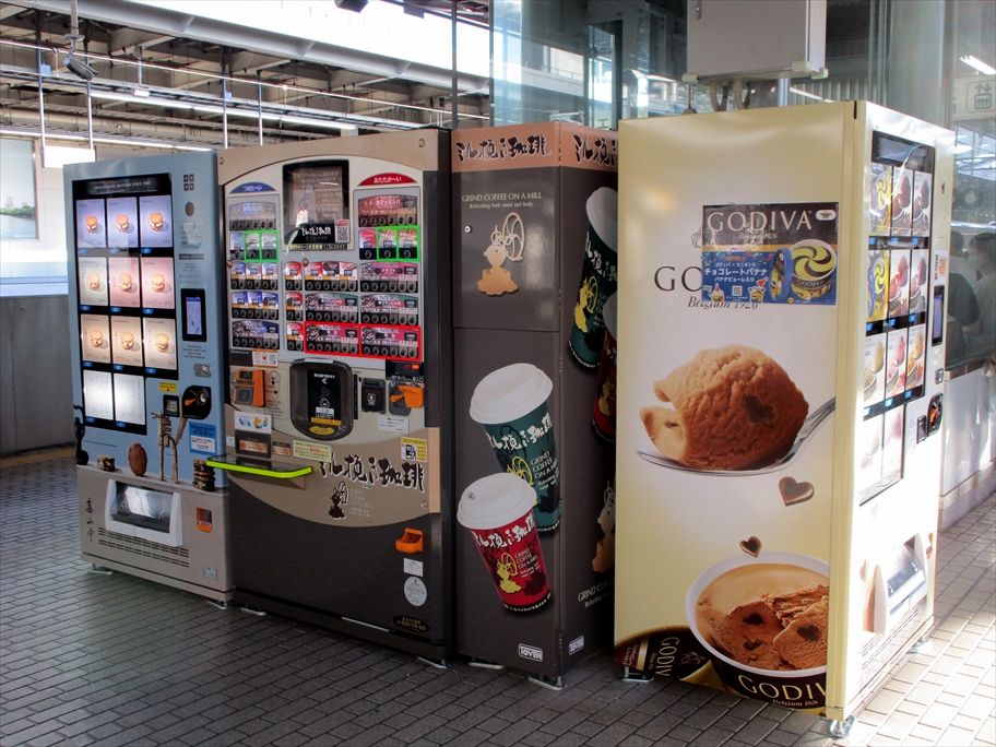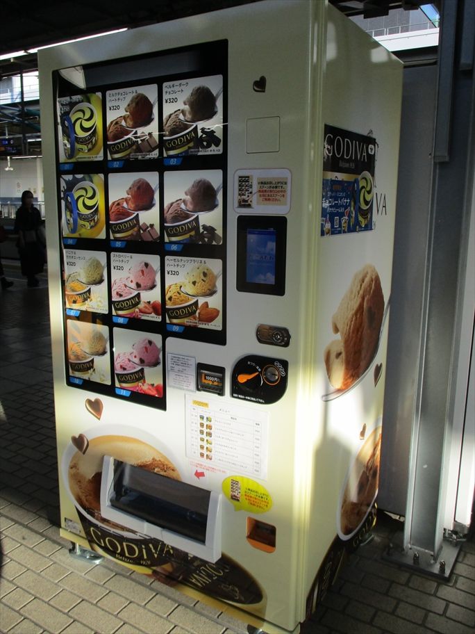 2022年09月28日 GODIVA・高山堂ほか自販機@新大阪新幹線ホーム カテゴリ:■自販機・ポスト・ロッカー等ラッピング by wrpgu 東海道新幹線の新大阪駅、8月後半からゴディバのアイス自販機が設置されました(関西初とのこと) 高山堂の自販機も並んでいました ミル挽き珈琲の自販機も目立ちます