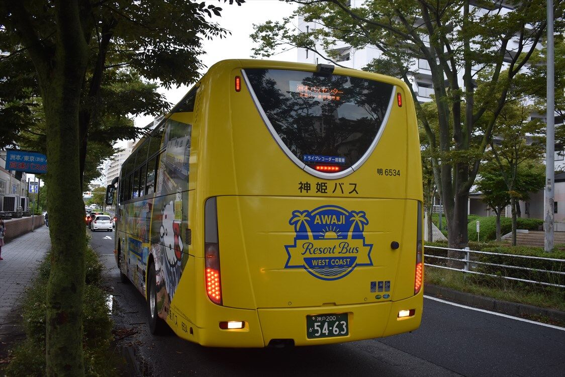 2022年09月30日 淡路島西海岸(神姫バス)明 カテゴリ:神姫バス(神戸ナンバー) by wrpgu 春に、淡路島で一度見かけていた、神姫バス・明石営業所の西海岸ラッピングバスに再遭遇 神戸営業所の車両と車種の違いからか、ほんの少しデザイン違い