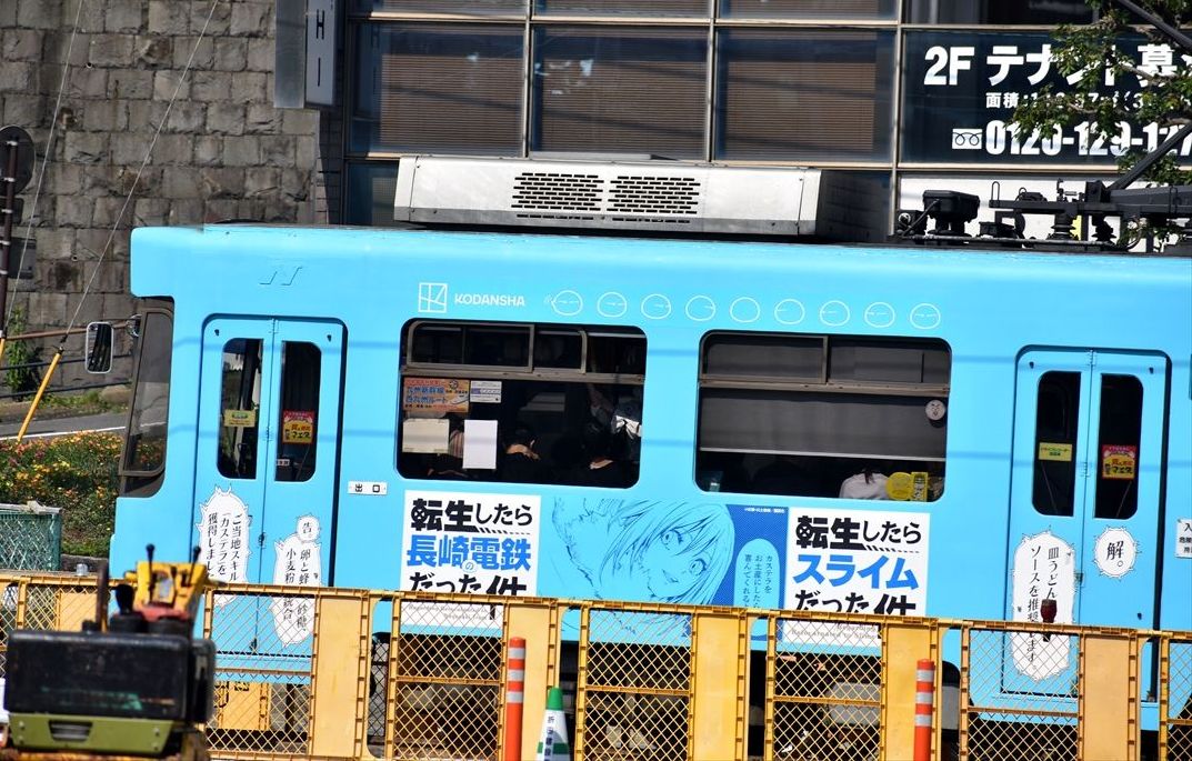 2022年09月30日 転生したらスライムだった件(長崎電気軌道) カテゴリ:長崎・佐賀県 ラッピング車 by wrpgu 全国の路面電車などでラッピング展開されている、転生したらスライムだった件、長崎でも走っていました 左右でデザイン違い 「転生したら長崎電鉄だった件」あれ?これは長崎電鉄っていうんだ。と思ったら、長崎(の)電鉄と書かれていました
