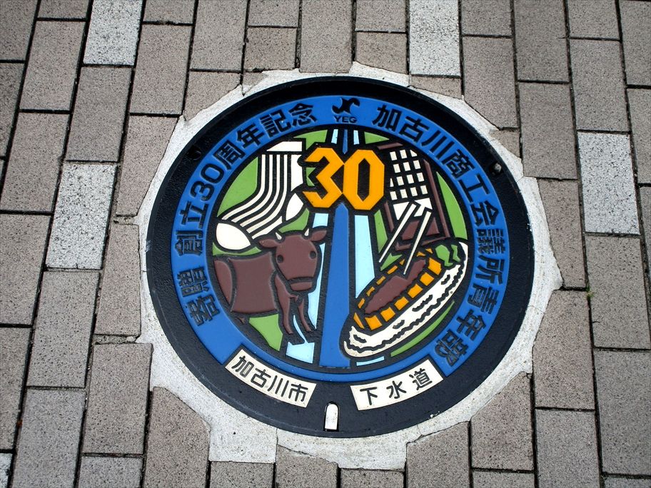 2022年09月29日 兵庫県加古川市・商工会議所(デザインマンホール) カテゴリ:◎マンホール:兵庫県 by wrpgu 加古川市の商工会議所の前に、同所30周年のデザインマンホールが設置されました 加古川と、名産などがデザインされています おまけ:つつじのデザインマンホール、水色単色のは初めて見かけました おまけ:加古川駅の階段装飾 おまけ:駅周辺のラッピング自販機