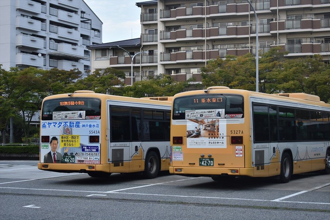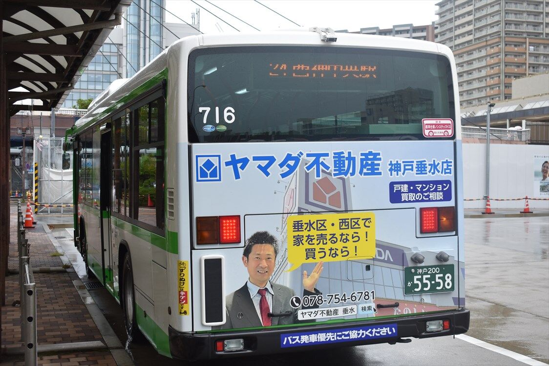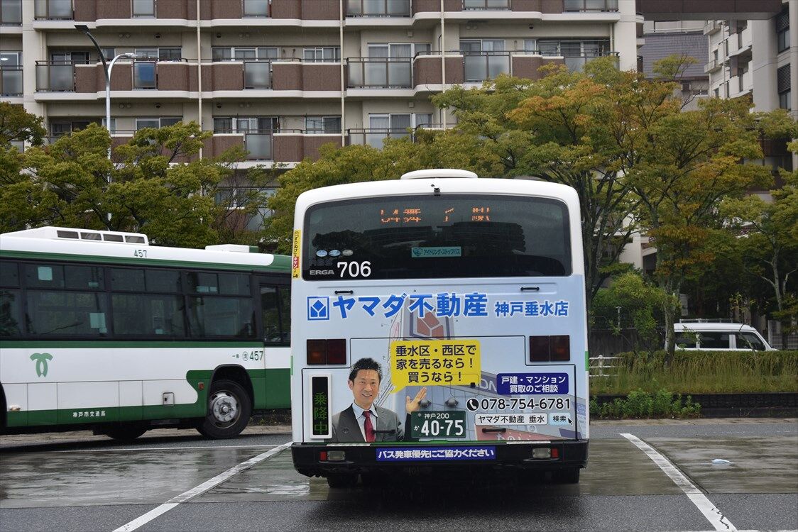 2022年09月29日 ◆ヤマダ不動産(神戸市バス) カテゴリ:神戸市バス by wrpgu 山陽バスにもラッピングがある、ヤマダ不動産、神戸市バスでも確認 垂水と、西神営業所で見かけました 山陽バスと同じデザイン おまけ:清水が丘営業所の、プレミストのリアラッピングバス、たくさんいましたが終了していました また、中央営業所にいた493も、清水が丘に転属されました