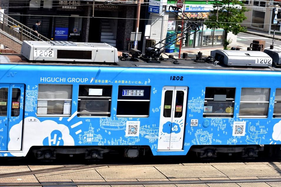 2022年09月30日 HIGUCHI GROUP(長崎電気軌道) カテゴリ:長崎・佐賀県 ラッピング車 by wrpgu 九州で、レジャー、飲食、エンターテイメントなど様々な事業展開を行う、ひぐちグループのラッピング電車 先ほど載せた、転生したらスライムだった件のラッピング電車に似た雰囲気のカラーデザインで、一瞬見間違えてしまいました