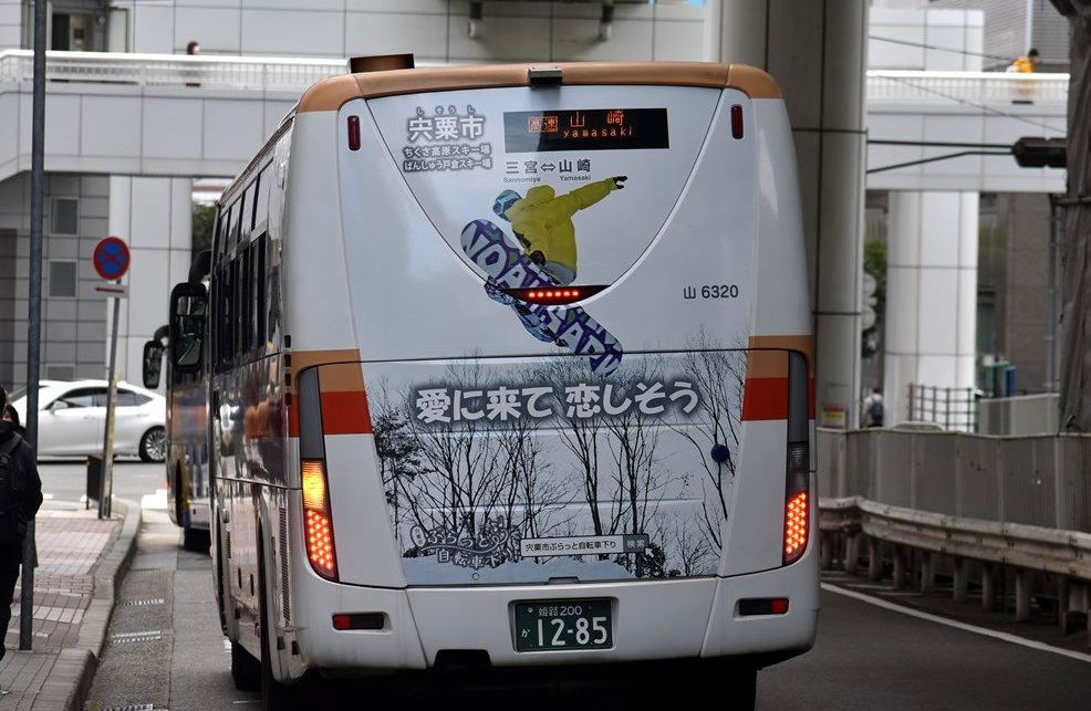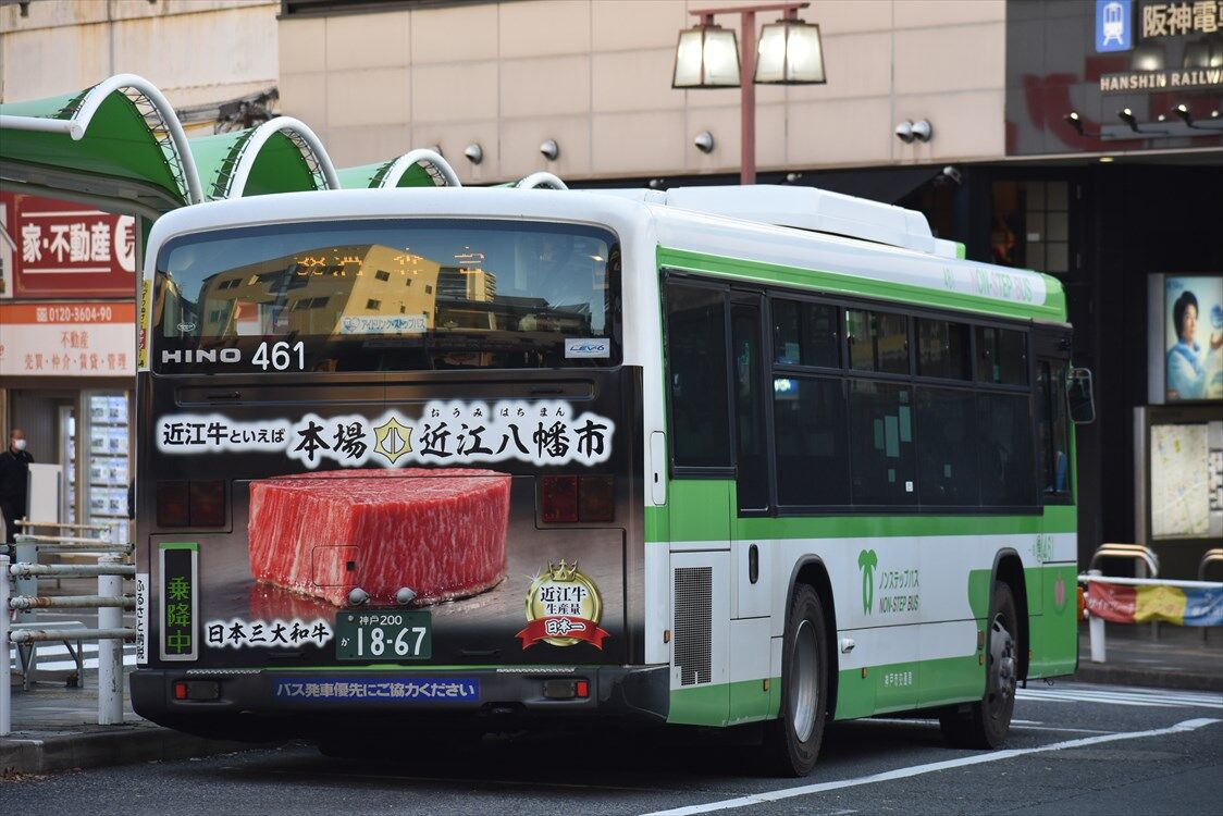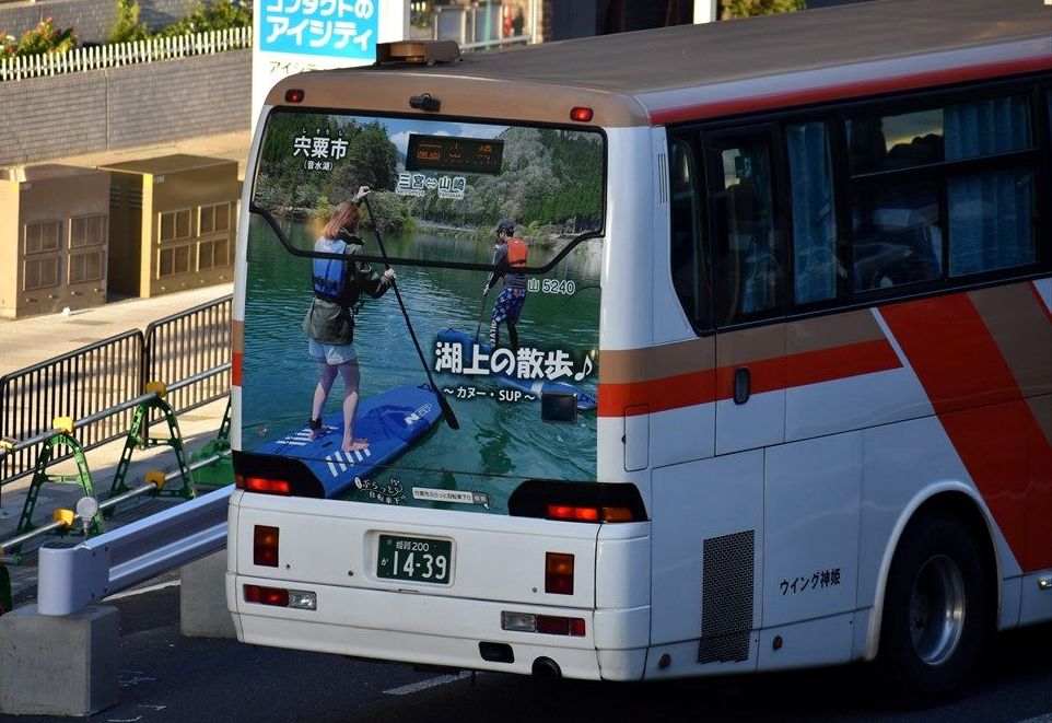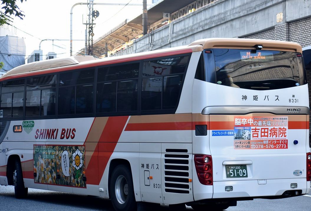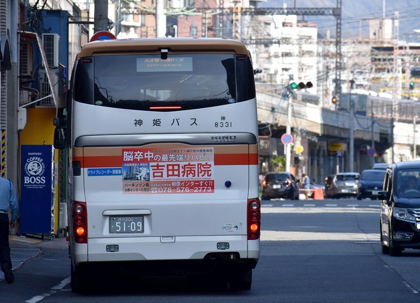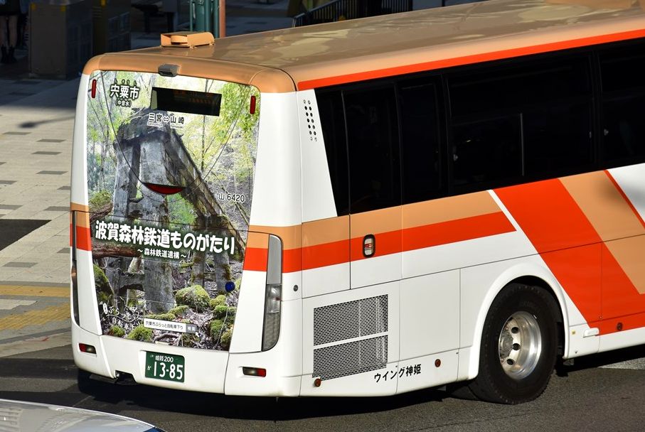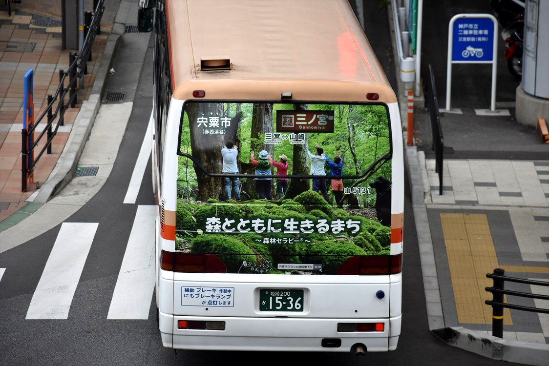 山崎~三宮の高速バスに、宍粟市のリアラッピングバスが再登場