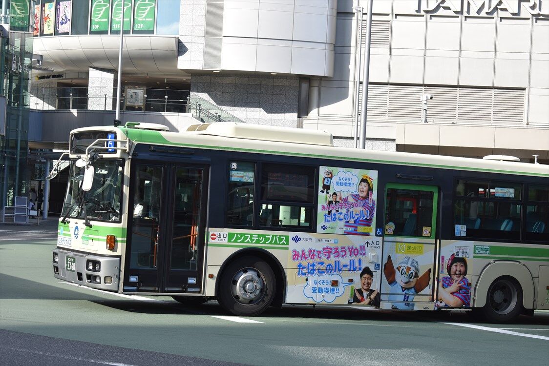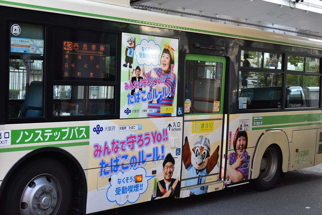おまけ:USJのラッピングバス、春に撮ったやつ(NKH-38)と同じかと思ったけど、車番を見たら違う車でした