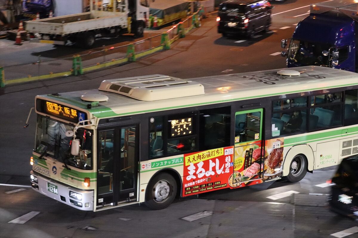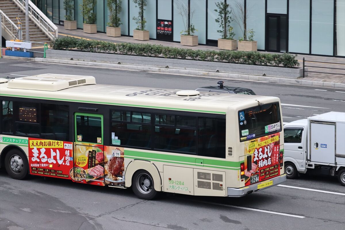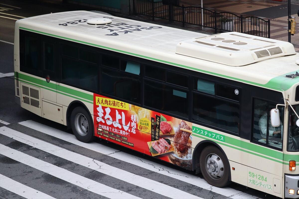 2023年12月31日 *まるよし精肉店(大阪シティバス) カテゴリ:大阪シティバス(3部分ラッピング) by wrpgu 井高野に登場した、精肉店の3面ラッピングバス 井高野営業所は、3面部分ラッピングが他よりかなり多い印象 (2023/12)