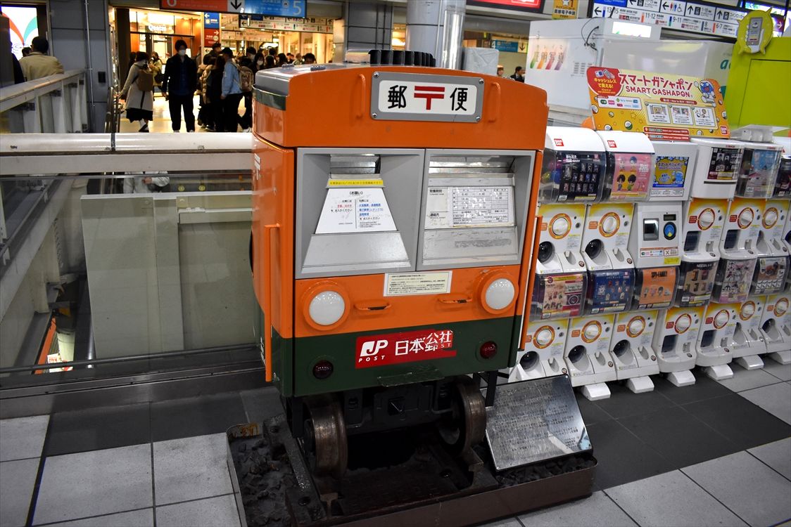 2023年12月30日 品川駅構内の電車カラー ラッピングポスト カテゴリ:■自販機・ポスト・ロッカー等ラッピング by wrpgu 撮ったのは初めてだっただろうか、JR品川駅構内にある、湘南カラーの電車をイメージしたポスト (2023/12)