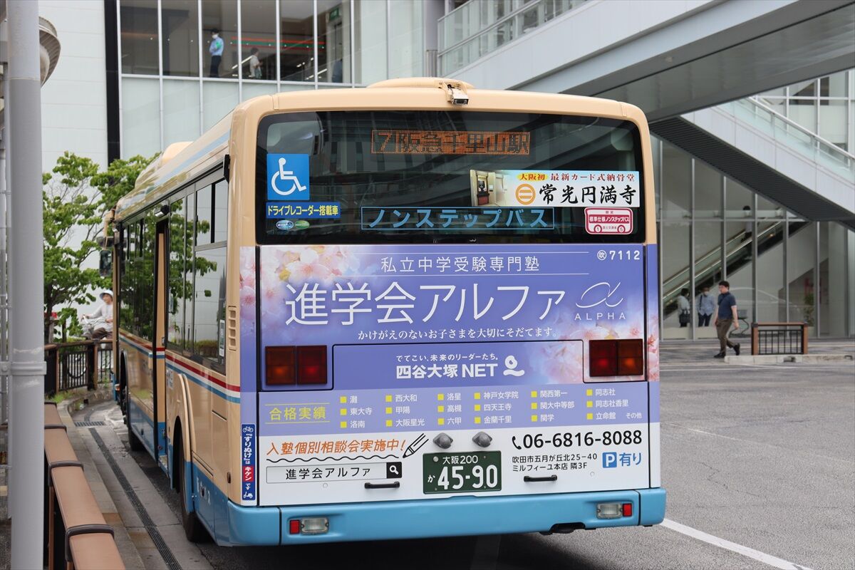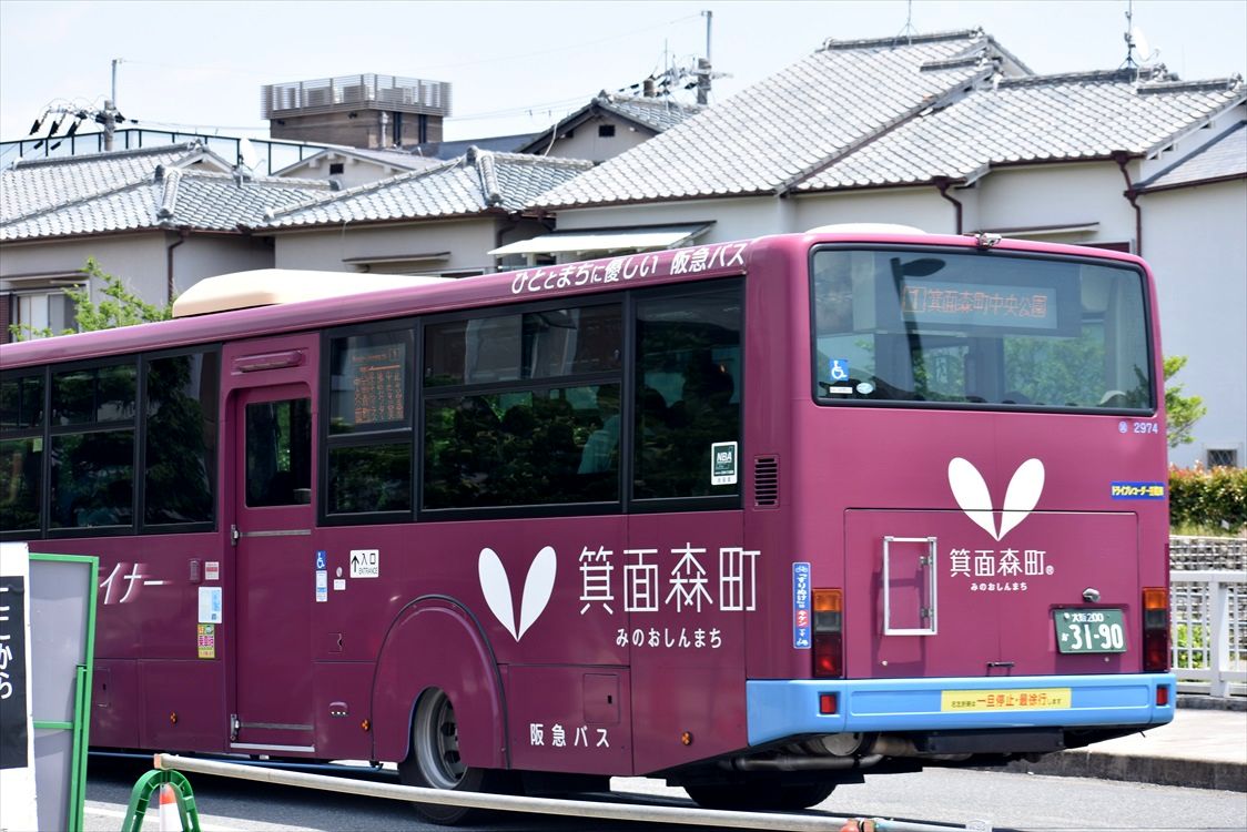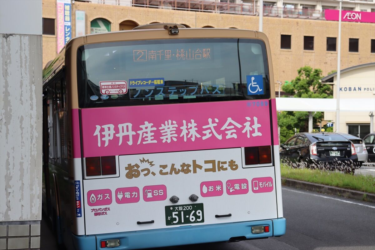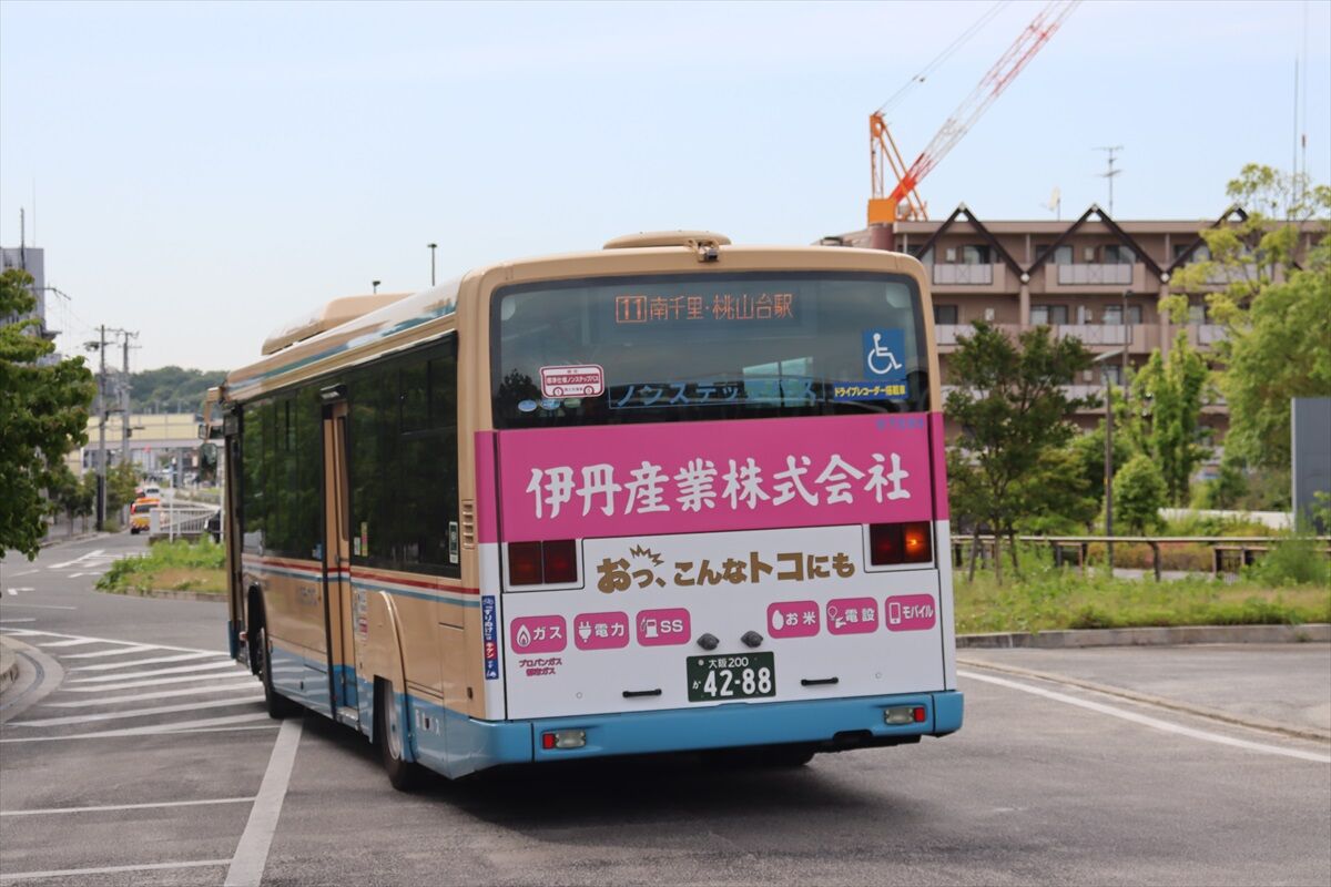 おまけ:箕面森町ライナーのラッピングバス、後部にあった「箕面森町-千里中央」の看板は外されています