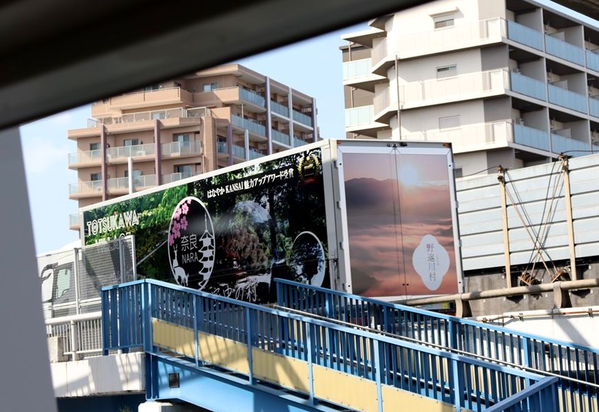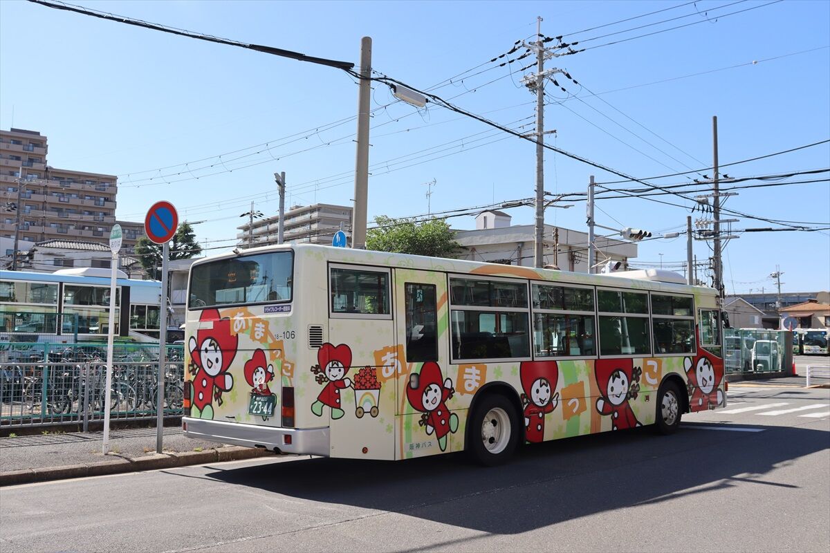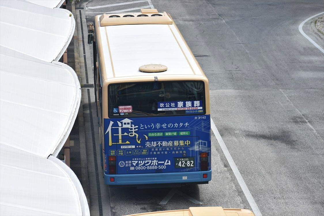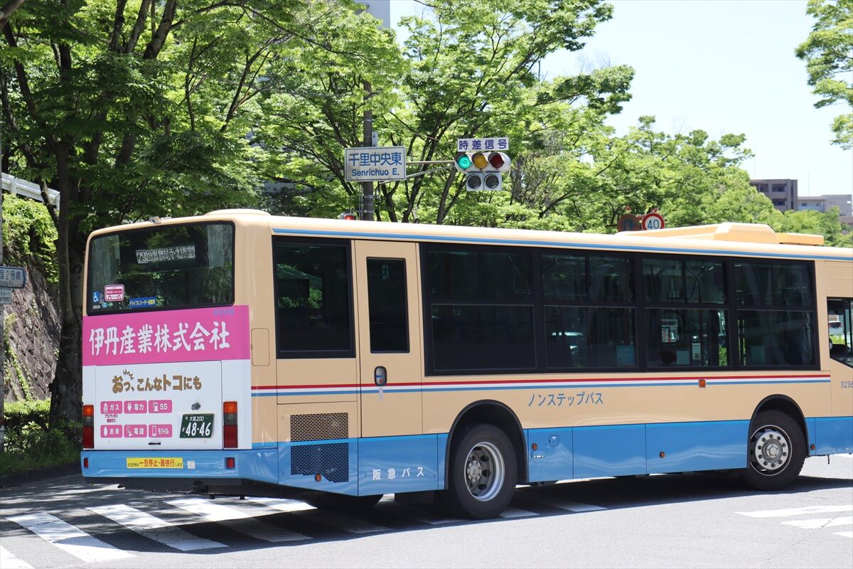 おまけ:箕面森町ライナーのラッピングバス、後部にあった「箕面森町-千里中央」の看板は外されています
