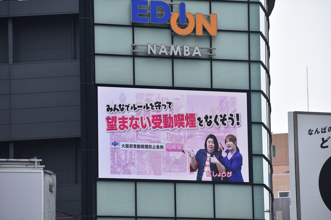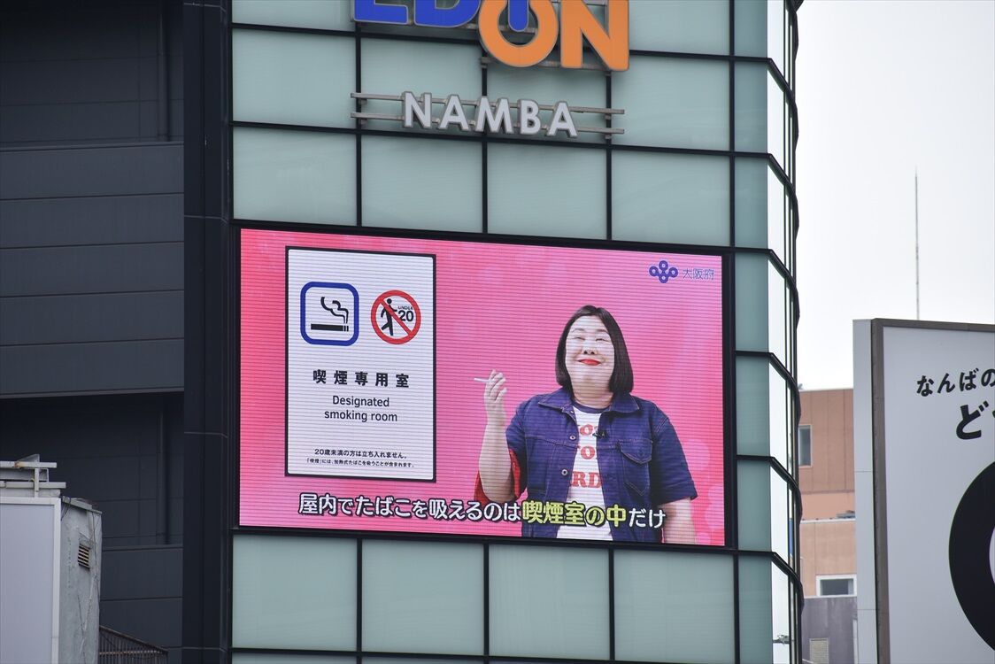ラッピングバスも登場した、紅しょうがさんの喫煙ルール、難波のビジョンでも