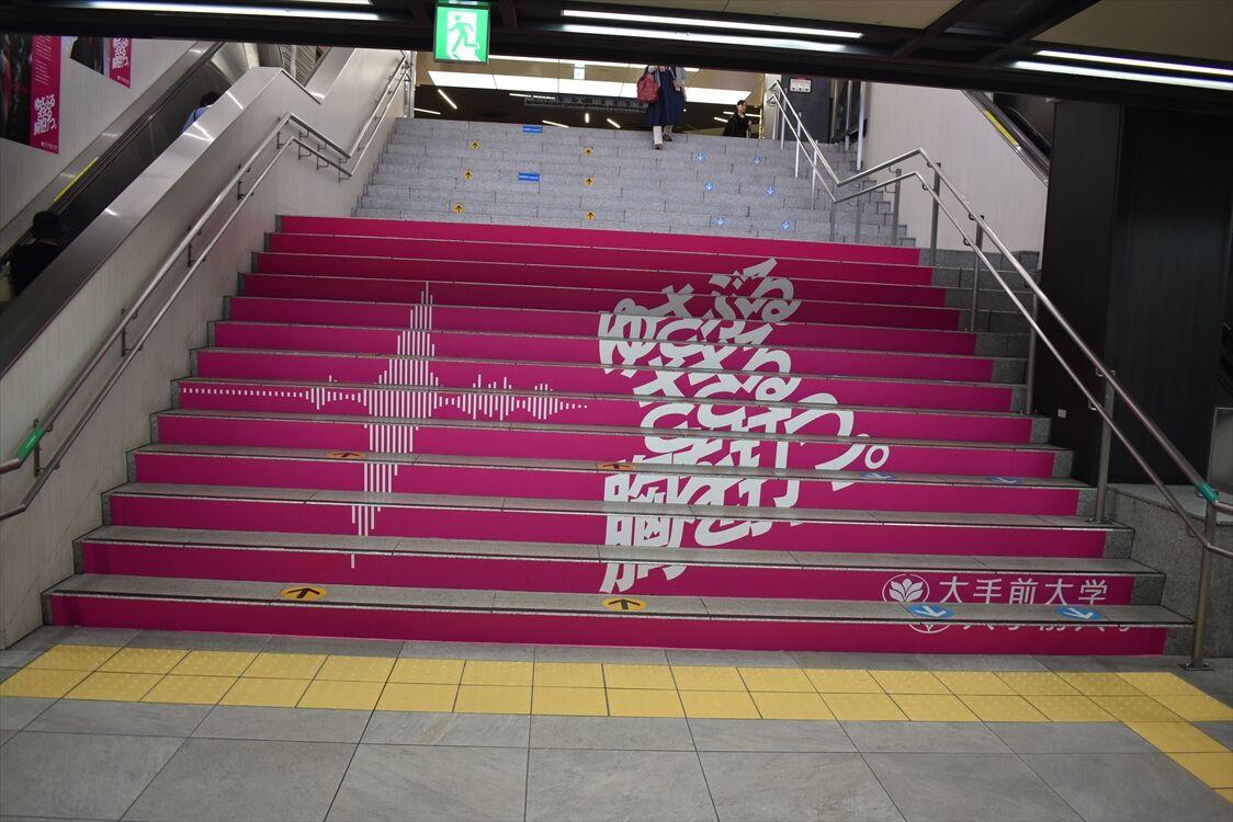 阪神梅田駅の階段、先週までは、摂南大学、