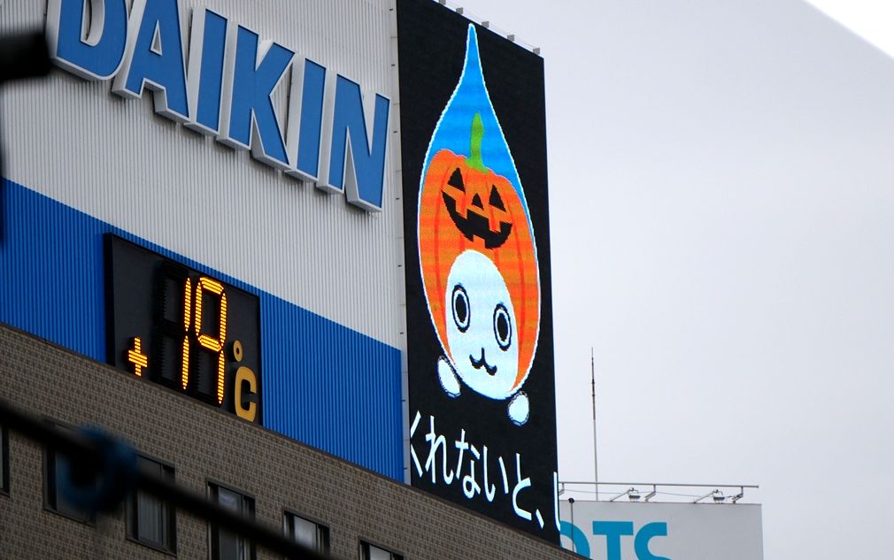 おまけ:新大阪駅のDAIKINビジョンでぴちょんくんが、ハロウィン仕様