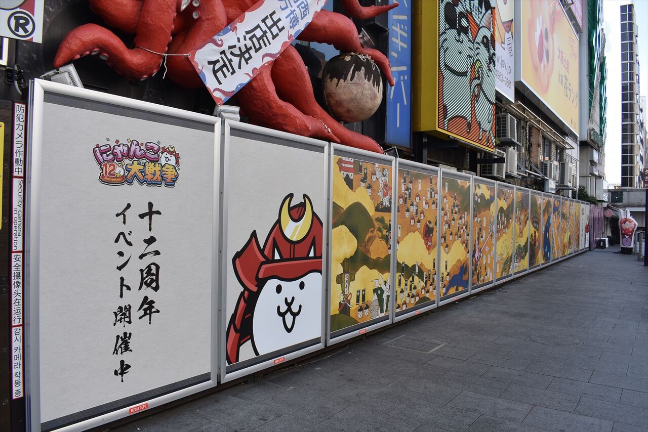2024年11月30日 にゃんこ大戦争ほか広告色々 カテゴリ:■街の広告等■街のビジョン広告 by wrpgu 11月半ばから大阪道頓堀で、にゃんこ大戦争12周年のワイド広告が掲出 梅田でも、阪急梅田通路に掲出。2週間かな? その他、大阪での広告色々 阪急~ホワイティうめだの通路の柱に、11/18~24に漫画「宝石の国」書き下ろし広告がありました JR大阪駅構内に、久保田利伸さんのライブ告知 道頓堀のビジョン広告:11月後半の一部 MAMA AWARDS 学園アイドルマスター MEOVV WOWOW ゴールデンカムイ (2024/11)