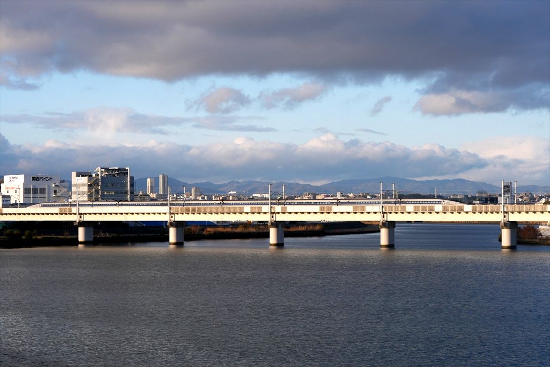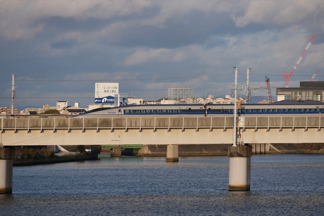 おまけ:春頃ですが、尼崎と大阪市の境にある神崎川で、何か新幹線来ないかな?と待ってたら、500系が来ました