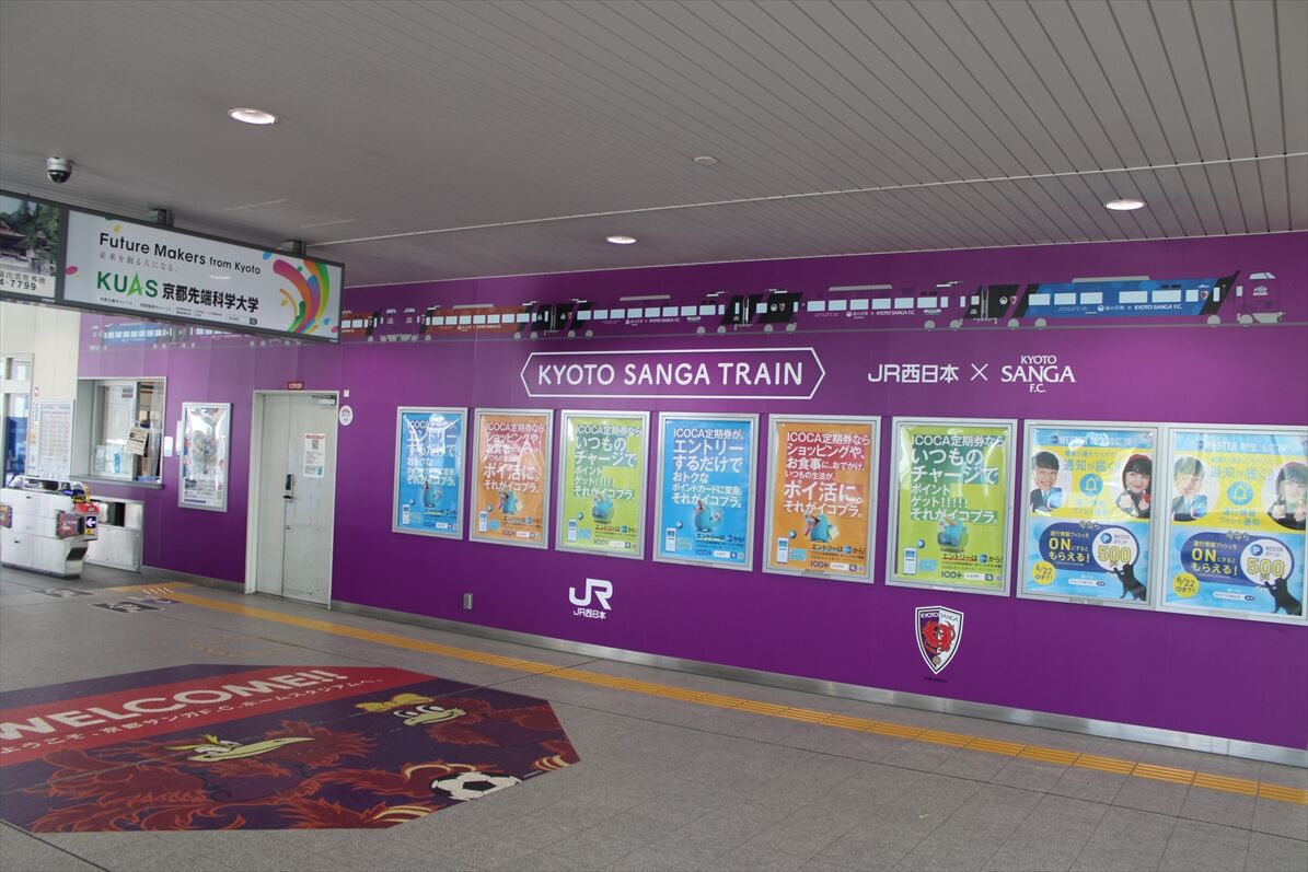以前から、亀岡駅にはサンガF.C.の装飾があちこちにありますが、先日訪れたらまた変わってました