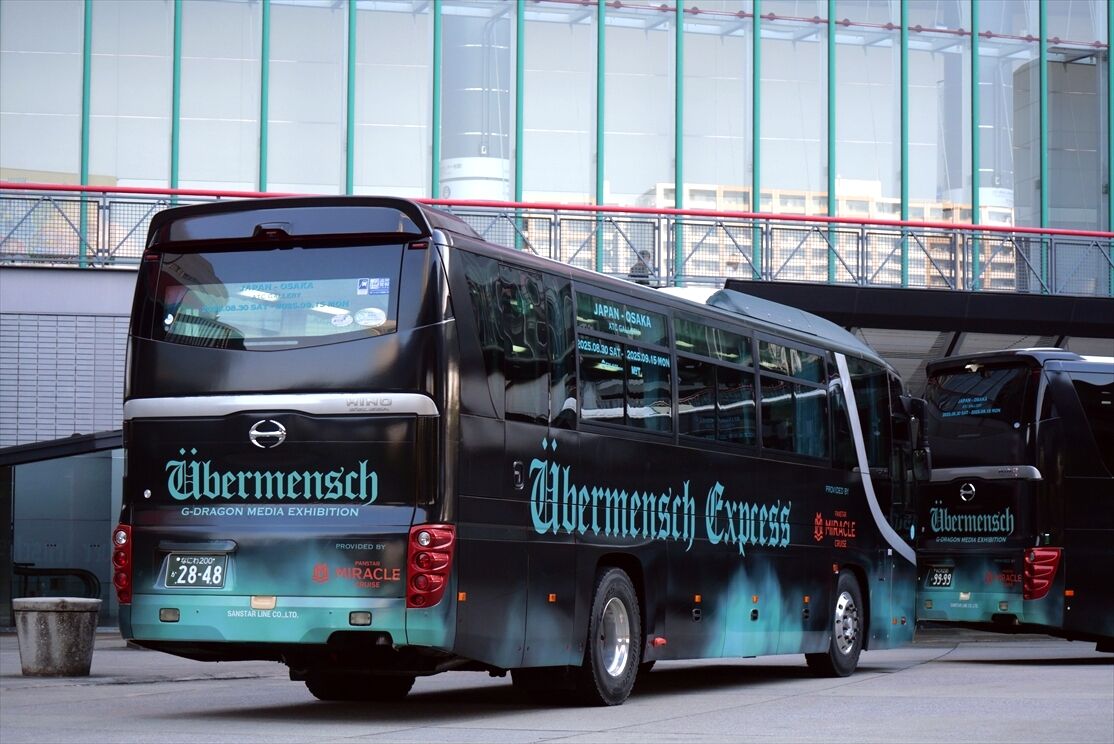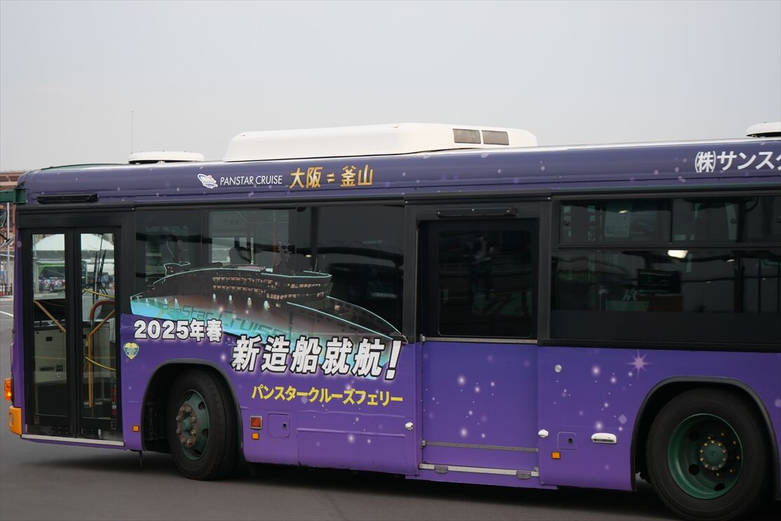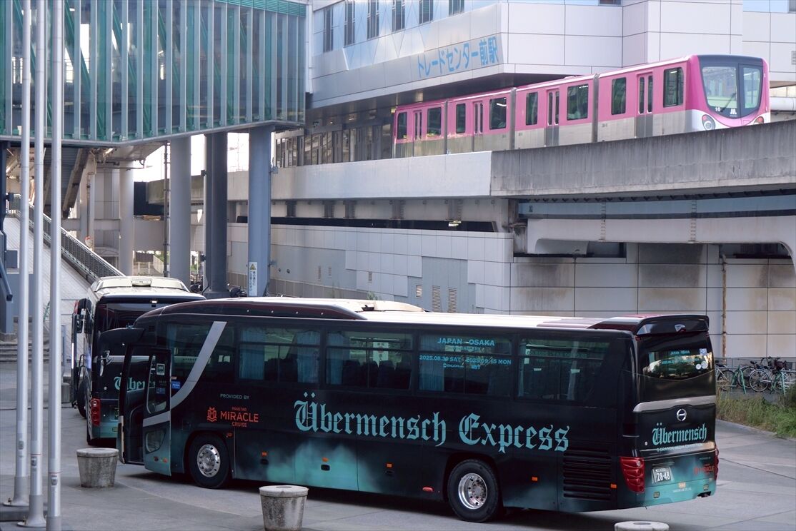 万博期間中は、特別に朝と夕方にシャトルバスを万博~南港エリアで運行していて、その時の様子