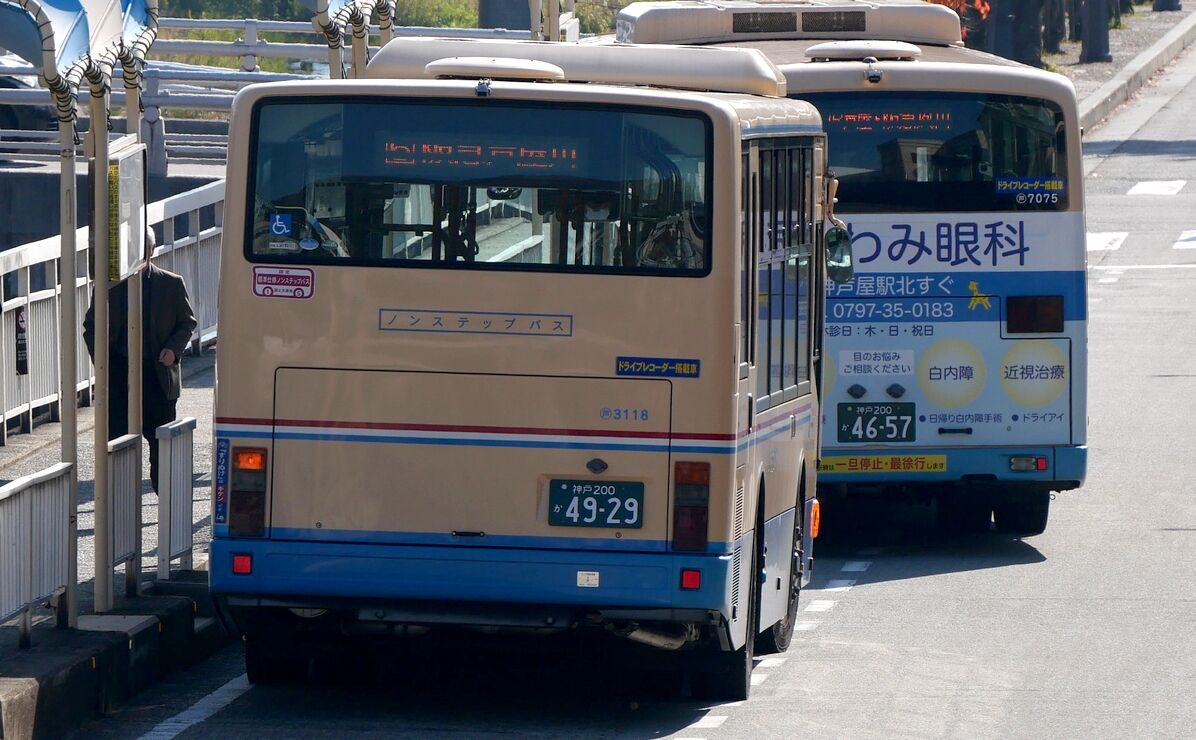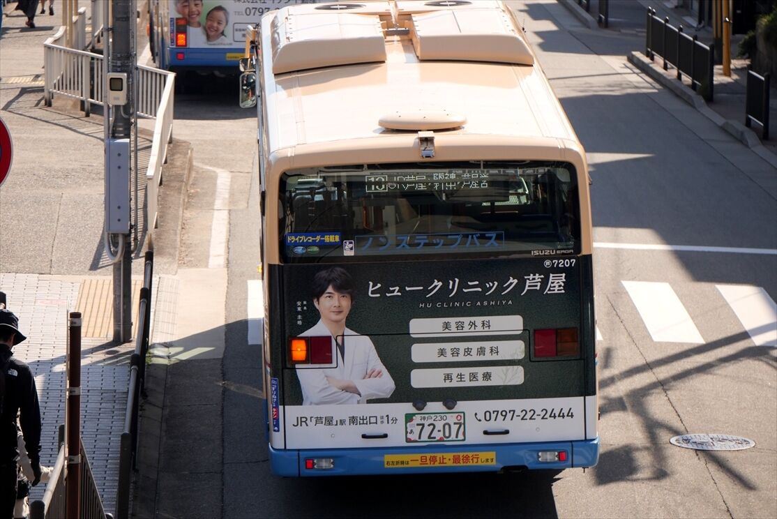 2025年11月30日 ◆ヒュークリニック芦屋(阪急バス)7207 カテゴリ:阪急バス(神戸ナンバー) by wrpgu 先日、3206号車の同リアラッピングバスを載せましたが、7207号車にもありました デザインはほぼ同じ おまけ:3118号車が西宮から芦屋に、ラッピングそのままで転属 つい1か月ほど前に、西宮で新ラッピング見たばかりだったのに。 転属のせいなのか、西宮の新車3305に、プロタイムズ西宮リアラッピングつきました この十数日前に見た時には無かったのに 同期の新車3306には何もなしでした なお、11月下旬に、3118のラッピングは剥がされました おまけ:たけふく1134のは初めて近くで撮ったかも (2025/11)