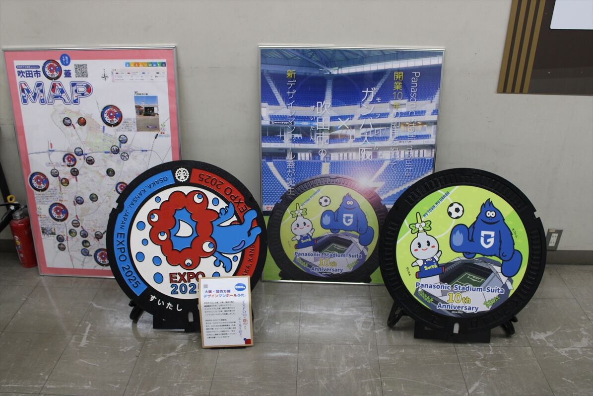 2025年11月29日 大阪府吹田市(デザインマンホール2025) カテゴリ:◎マンホール:大阪府 by wrpgu 吹田市にまた新しいデザインマンホールが設置 今年は、道路のデザイン ・阪急バス「吹田営業所前」そば「フラワーロード」 ・新小川 「こもれび通り」 ・江坂駅そば 「江坂ウエスト サイド ストリート」 そして、まだ設置はされていなく、市役所で展示されている、ガンバ大阪・Panasonic Stadium SUITAの開場10周年 本年度中にスタジアムそばに設置予定とのこと (2025/11)