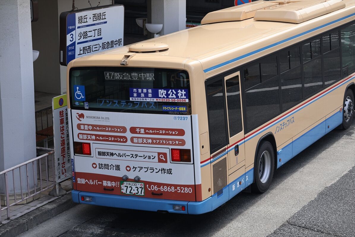 2026年02月15日 ◆服部天神ヘルパーステーション(阪急バス) カテゴリ:阪急バス(千里営業所) by wrpgu 千里営業所の車両で、介護系のリアラッピングバスが登場 この車両はまだ万博ナンバーですが、7243以降は通常ナンバーになって、希望ナンバーもやめたようで (2025/2)