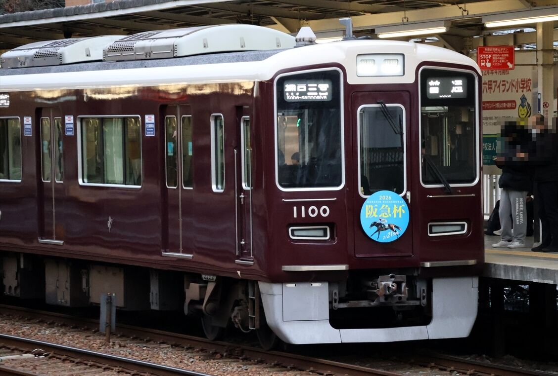 2026年02月16日 阪急杯HM(阪急電車) カテゴリ:阪急・能勢電車:HM・ラッピング by wrpgu 今津線と神戸線で、阪神競馬場の阪急杯HMがつきました 今津線では8200系にもついているようですが、今日は朝だけで入庫したようで (2026/2)