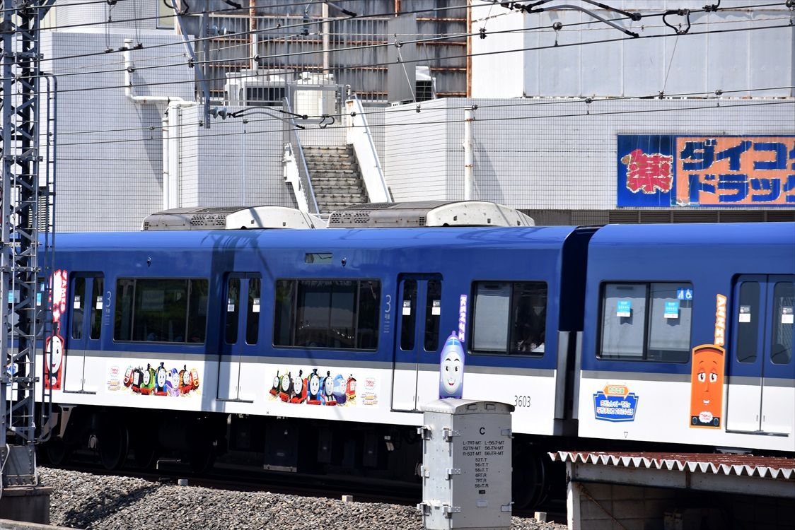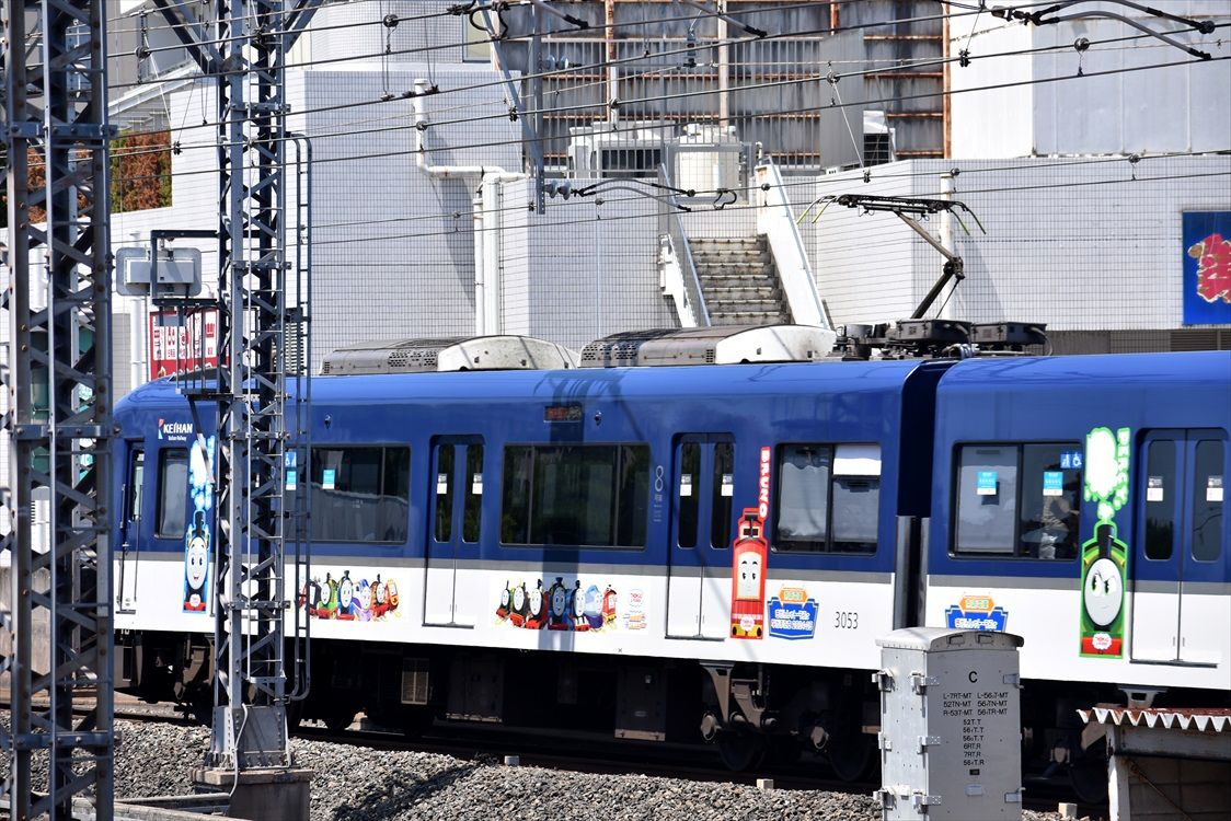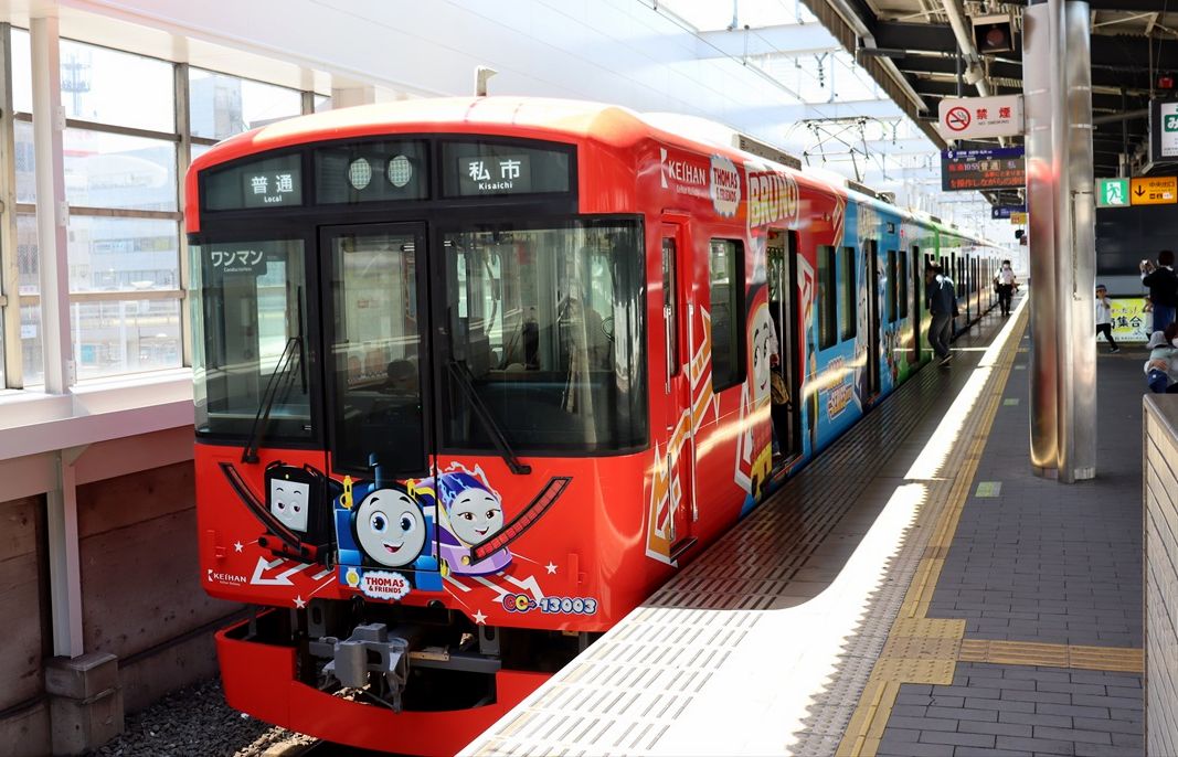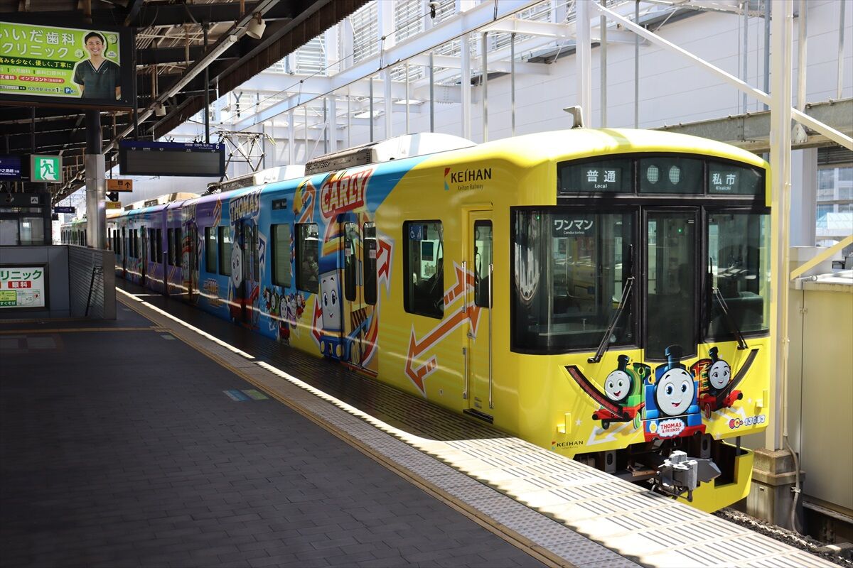 2024年05月19日 トーマス2024ほか(京阪電車) カテゴリ:京阪電車 by wrpgu 京阪電車、交野線で久しぶりにトーマスとのコラボが復活 4両それぞれデザイン違い 車内やカーテンにも 本線でも、トーマス号が十年ぶりくらいに復活 3000系に部分ラッピング 3000系は、「東京卍リベンジャーズ 描き下ろし新体験展 最後の世界線」の装飾編成もいました また、13000系には、「紫式部ゆかりのまち宇治魅力発信プロジェクト」装飾列車が たまたま乗車したのがこれでした おまけ:枚方市駅の大阪方面ホームのホームドア 京阪は関東のJRのようなチャイムだな (2024/5) 「京阪電車」カテゴリの最新記事 < 前の記事次の記事 >
