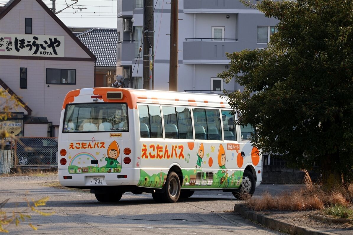 2026年02月06日 えこたんバス(幸田町コミュニティバス) カテゴリ:愛知県 ラッピング車 by wrpgu 幸田駅を降りたら、いきなりコミュニティバスに遭遇 筆柿の帽子をかぶった「えこたん」のデザイン 違うデザインのやつもあるようで おまけ:何のバスか不明ですが、役場前にいたバス (2026/1) 「愛知県 ラッピング車」カテゴリの最新記事 < 前の記事次の記事 >