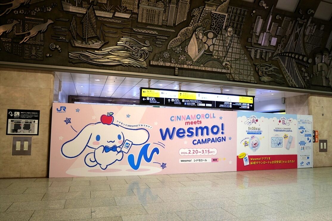 先週から、大阪駅で、シナモロールとWesmoのコラボ看板が(今週も設置中)