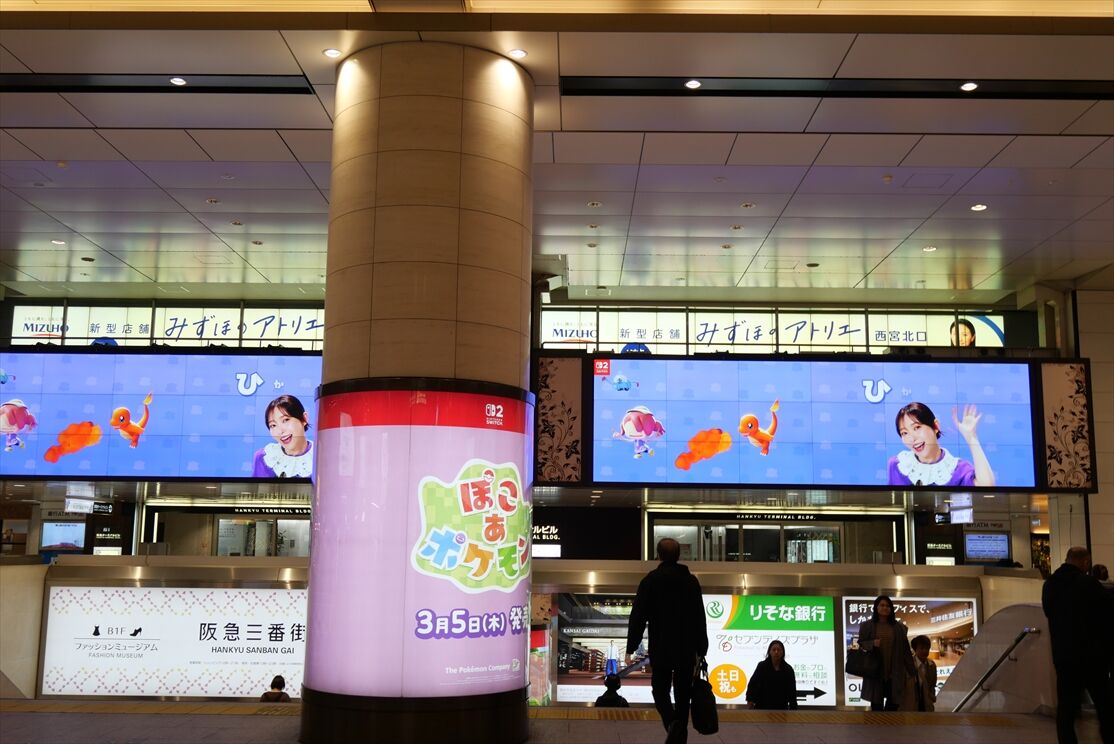 ・阪急梅田通路広告、ならびにビッグマン広場の階段など、「ぽこ あ ポケモン」でジャック