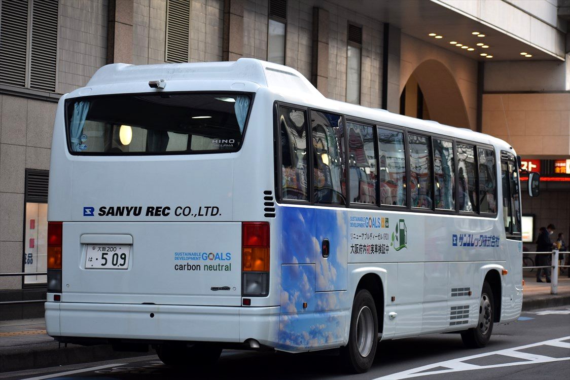 2023年05月12日 サンユレック×SDGs(送迎バス) カテゴリ:〇企業・住居向け送迎バス by wrpgu 高槻に本社がある、サンユレック(建築、土木、電子、半導体など)の送迎バス、ちょっとラッピングされていました 次世代型バイオ燃料のリニューアブルディーゼルというのを採用しているようです (2023/4)