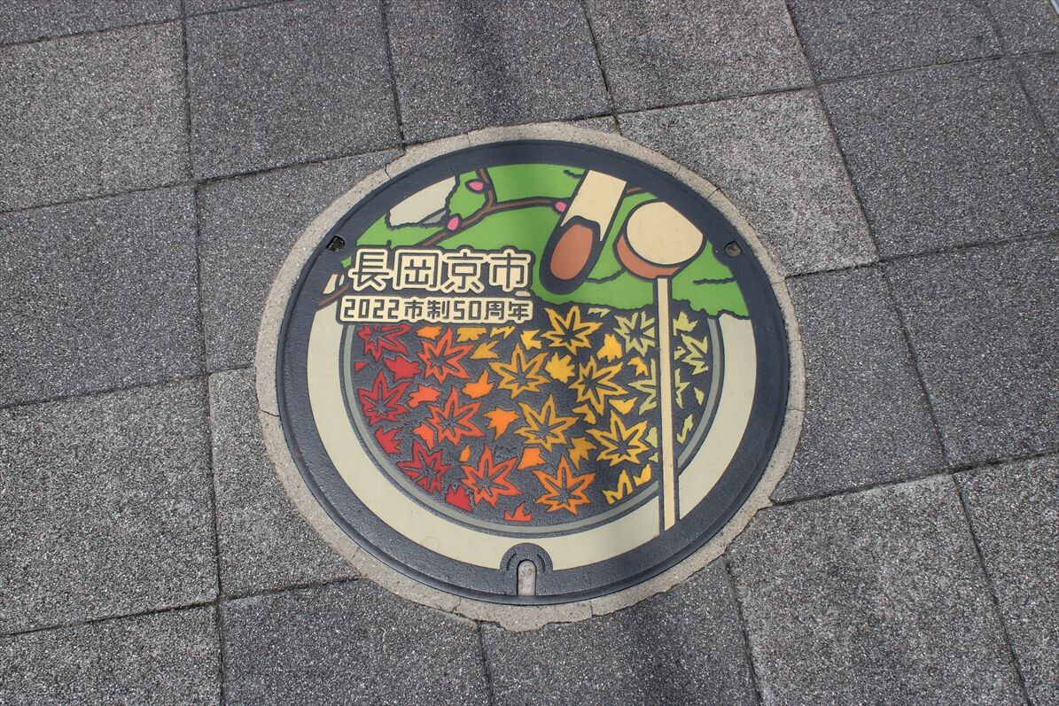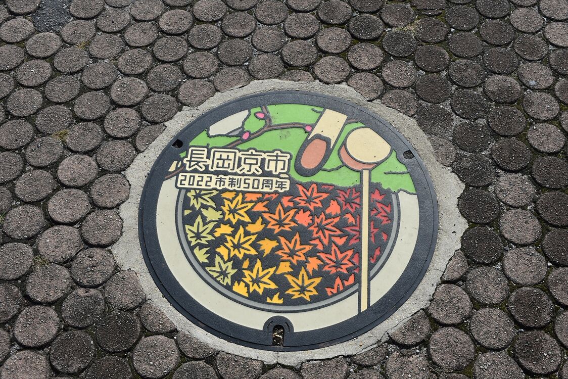 2022年から設置されている、長岡京市の50周年記念マンホールですが、配色違いのを見かけました