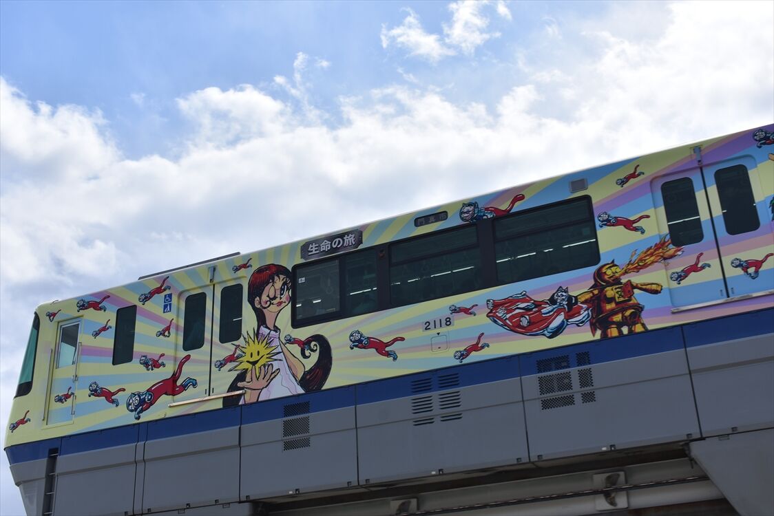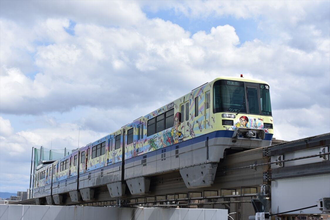 2025年04月03日 ヤノベケンジ「生命の旅」(大阪モノレール) カテゴリ:大阪モノレール by wrpgu 先月かあら5年間の予定で、現代美術作家のヤノベケンジさんデザインのラッピングモノレールが運行 見覚えあるデザインだと思ったら、大阪空港駅のステンドグラスのですね (2025/3)