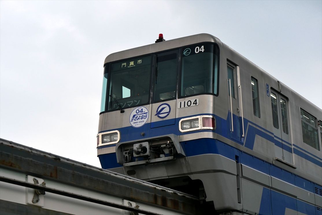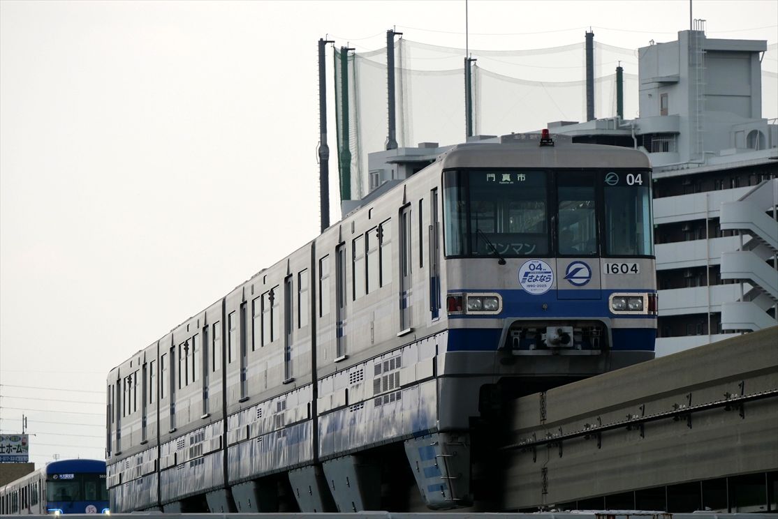 2025年07月10日 1104さよならHM(大阪モノレール) カテゴリ:大阪モノレール by wrpgu 大阪モノレールの初期車で、ラスト1本となっている1104Fが、7月11日で引退とのことで、さよならヘッドマークを取り付けて運行 ちょうど運用日に遭遇できました (2025/7)