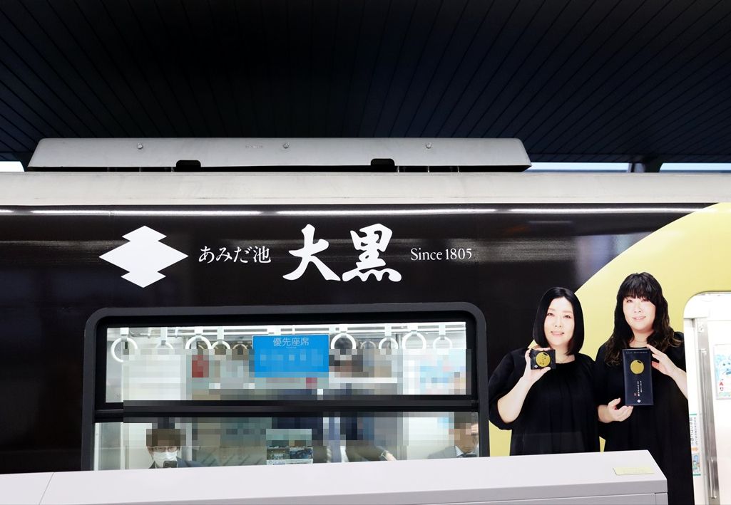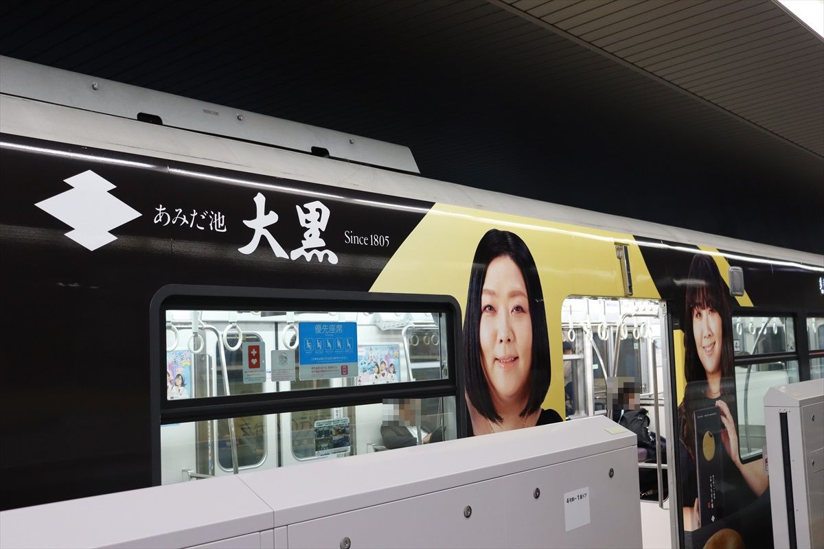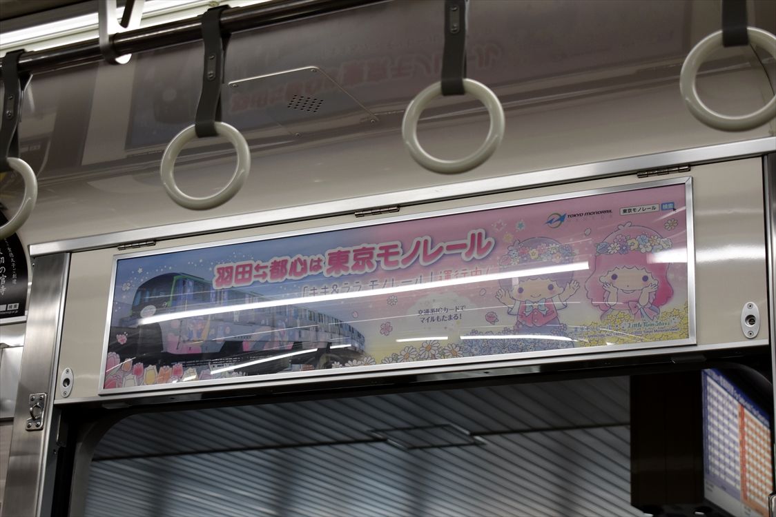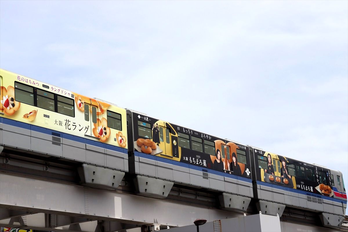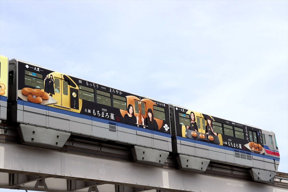 2024年05月18日 花ラング・もちまろ菓(大阪モノレール) カテゴリ:大阪モノレール by wrpgu 大阪モノレールで、久しぶりフルラッピングが登場 あみだ池大黒の大阪銘菓2種類の広告。 大阪もちまろ菓は、やすともさんがデザイン ホームでは、ホームドアのせいで見えにくいのが残念 おまけ:千里中央の東京モノレールの広告
