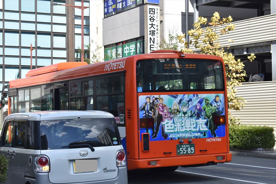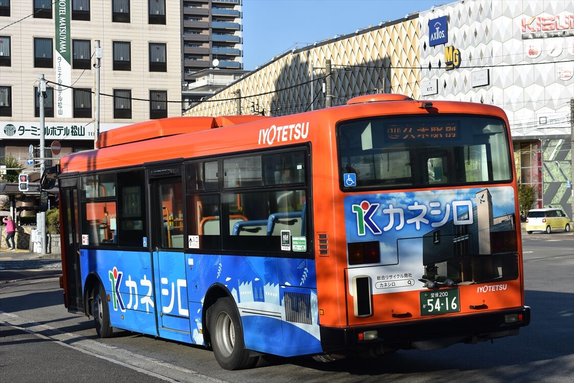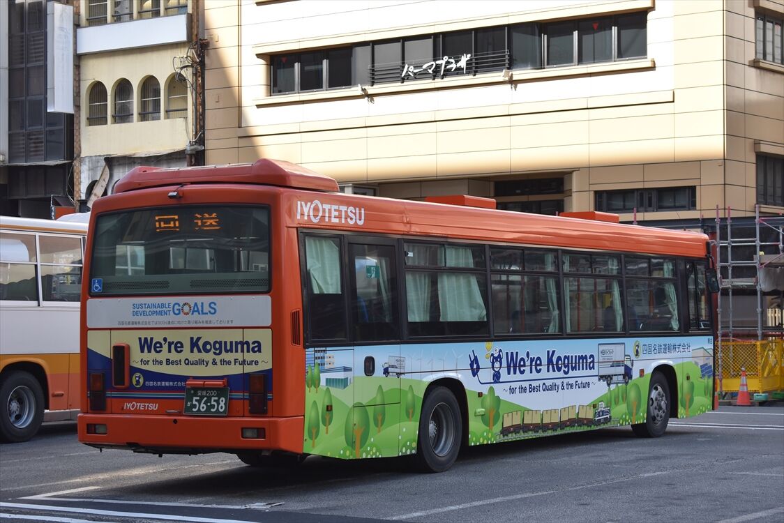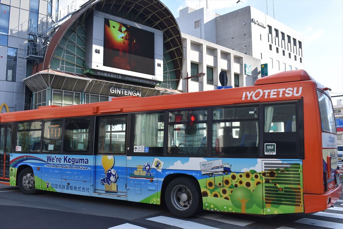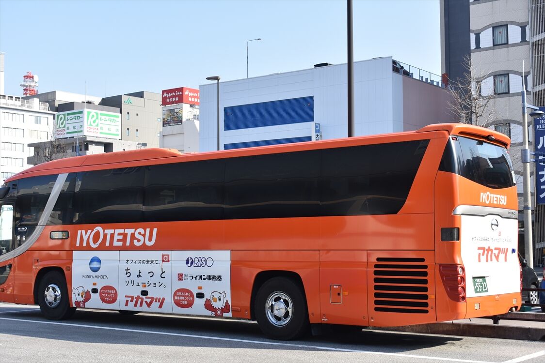 2025年03月25日 アカマツ(伊予鉄バス) カテゴリ:愛媛県 ラッピング車 by wrpgu 高松駅で見かけた、伊予鉄高速バスのラッピングバス 松山市にある、オフィス用品の会社のPR (2025/3)