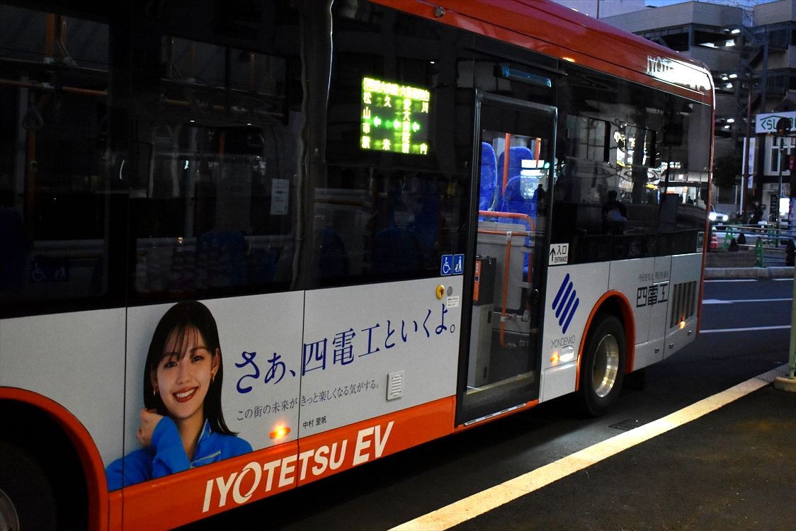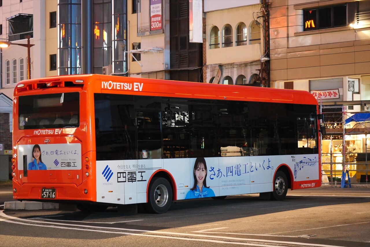 2025年02月04日 四電工(伊予鉄バス) カテゴリ:愛媛県 ラッピング車 by wrpgu 伊予鉄バスのEV車に、四電工のラッピングがありました CMキャラクターは、中村理帆さん おまけ:ラッピングないEV車 (2024/12)