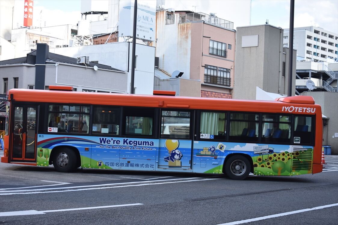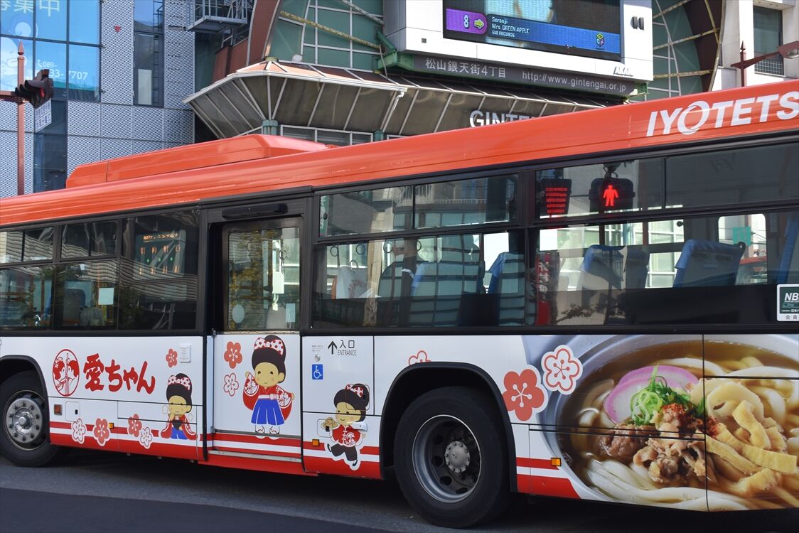 2025年02月01日 愛麺(伊予鉄バス) カテゴリ:愛媛県 ラッピング車 by wrpgu 松山の製麵会社のラッピングバス。 鍋焼きうどんなどを扱う会社のようで、美味しそうなデザインとなってます (2024/12)