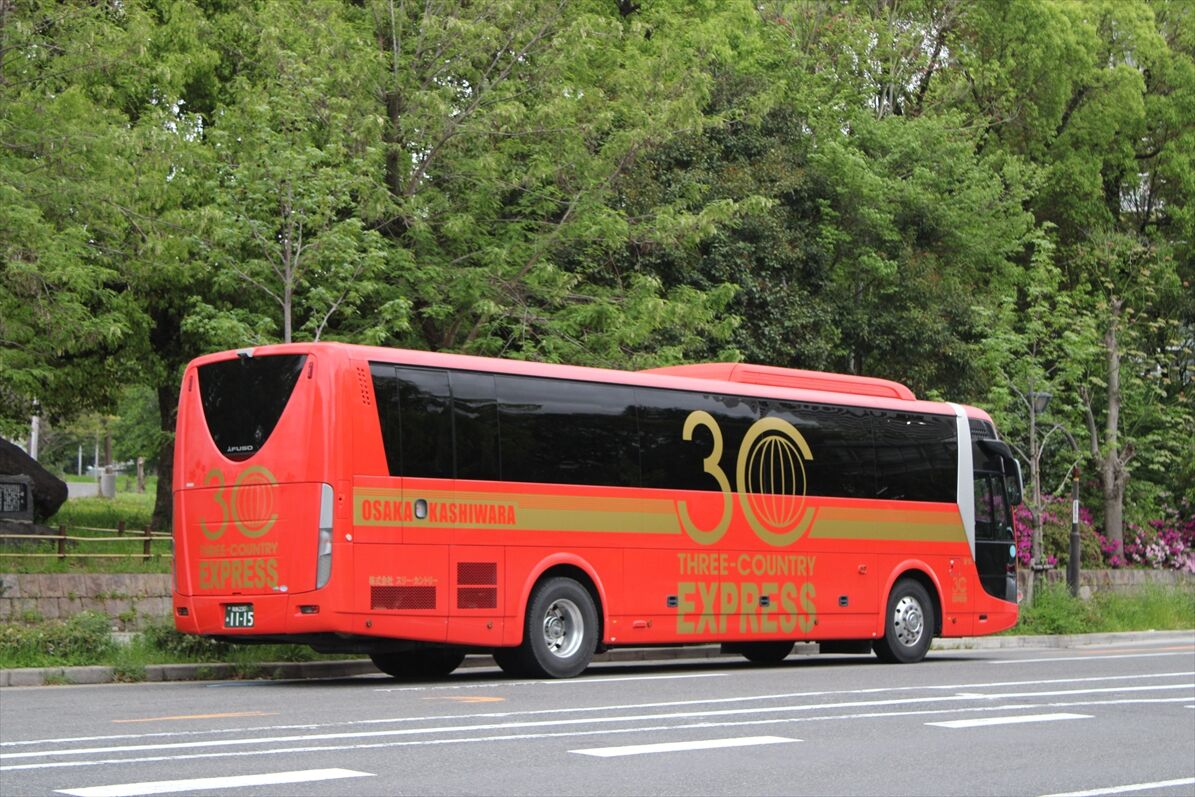 2025年06月11日 和泉230あ1115(スリーカントリー) カテゴリ:◇高速・観光バス等 by wrpgu 大阪市内で見かけた、スリーカントリーの赤色のバス 以前も見たことあったかな?と見返すと、2020年に見ていましたが、その時は中国ツアーバスのデザインでした (2025/4)