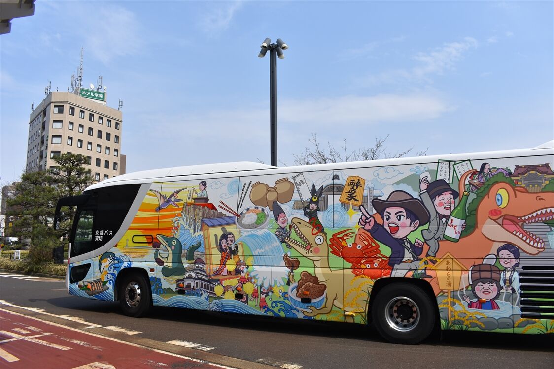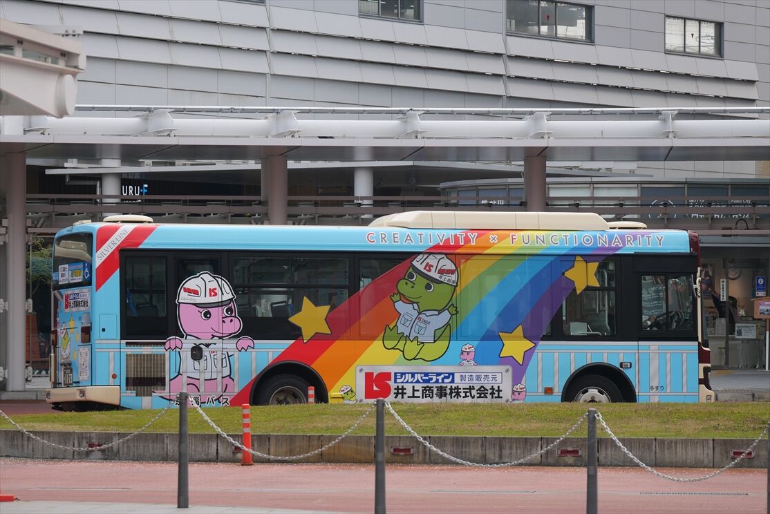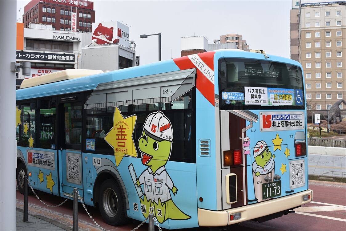 2025年05月25日 井上商事(京福バス) カテゴリ:北陸 ラッピング車 by wrpgu 福井で見かけた、井上商事のラッピングバス すごくカラフルで、左側の「ひさし」はなんかリアルな雰囲気 (2025/3)