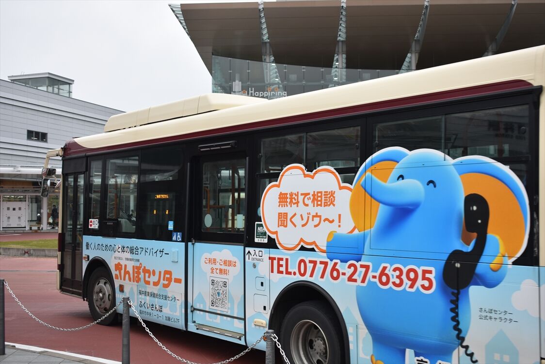 2025年05月29日 ▽さんぽセンター◆ノアの杜(京福バス) カテゴリ:北陸 ラッピング車 by wrpgu 福井産業保健総合支援センターの左面ラッピングバス ラジオCMなどで、「さんぽ」耳にしていましたが、こういう略だったのか 後部はペット葬 別車両でも左面ラッピングありました (2025/3)