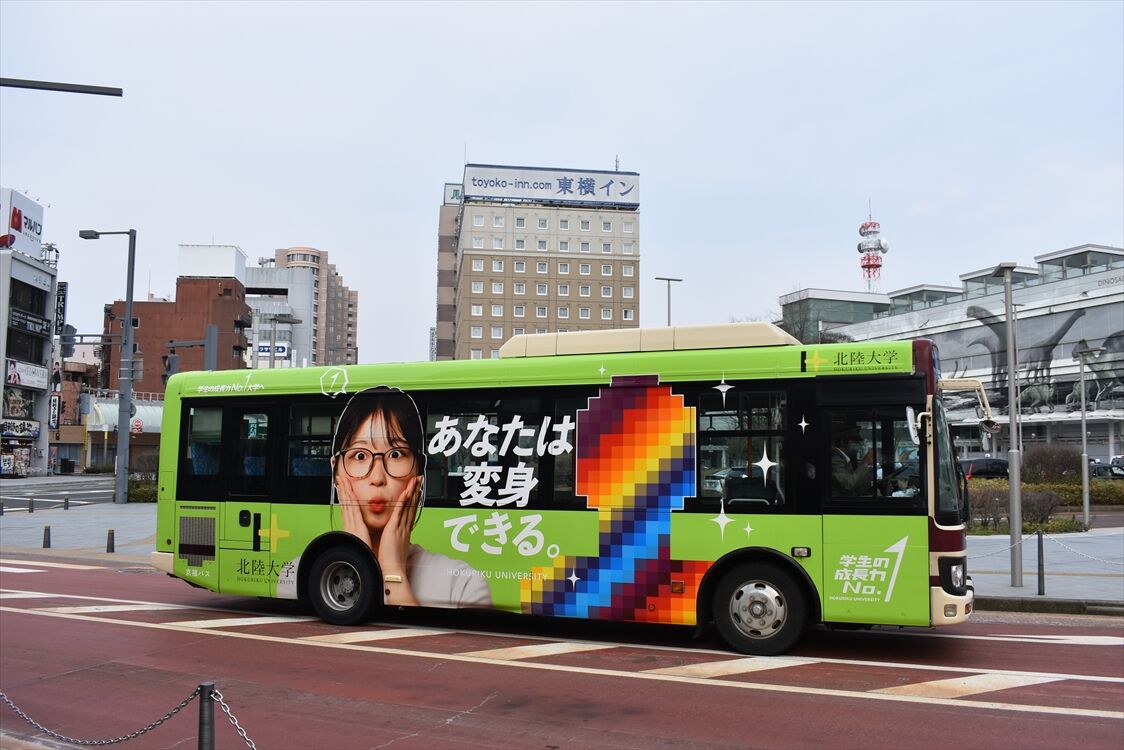 2025年06月01日 △北陸大学(京福バス) カテゴリ:北陸 ラッピング車 by wrpgu 福井で見かけた、北陸大学のラッピングバス すごい明るいデザインですが、広告は右面だけでした 後部はふくJOB おまけ:別車両でも、ふくJOBありました (2025/3)