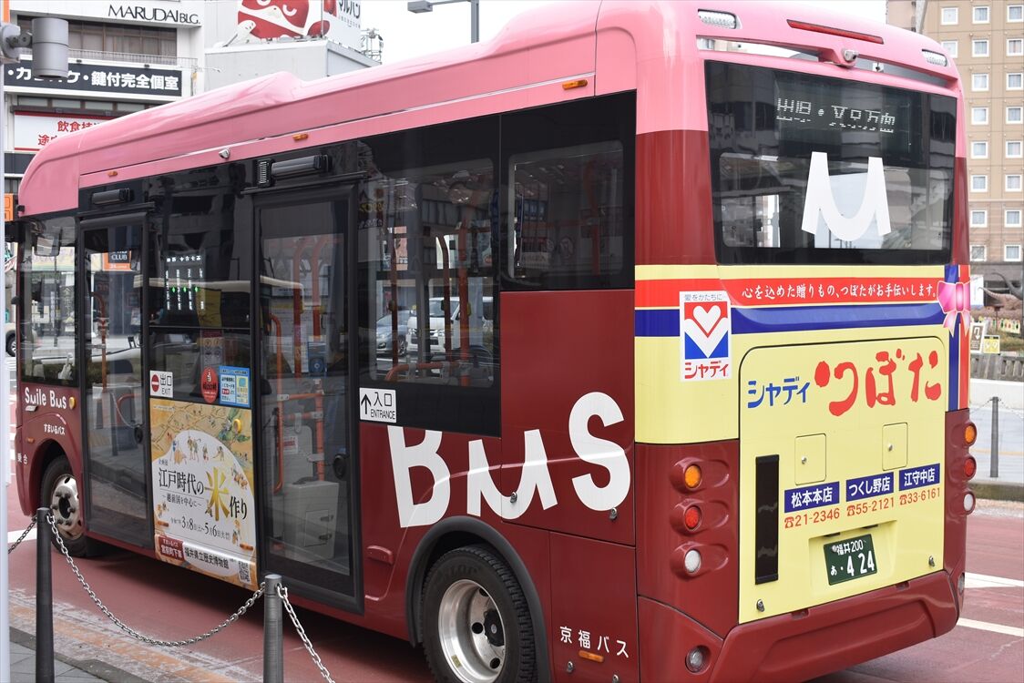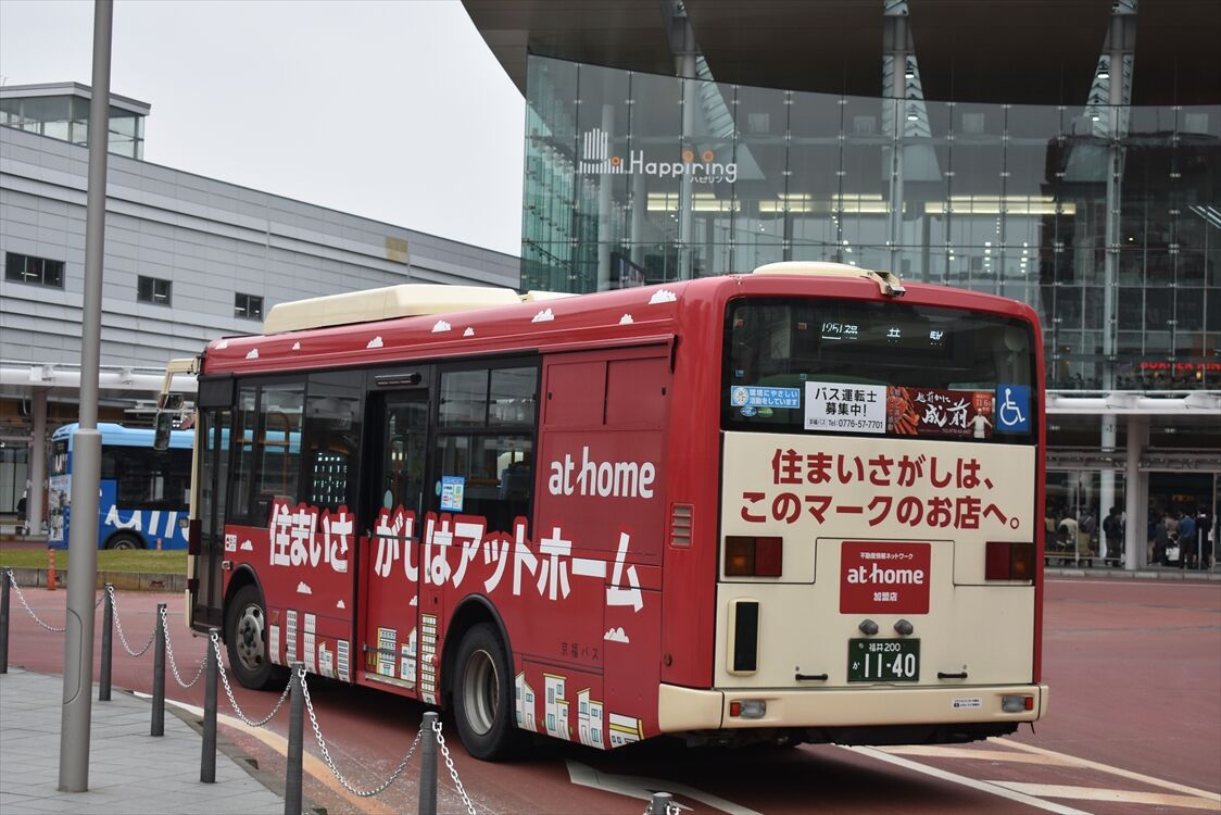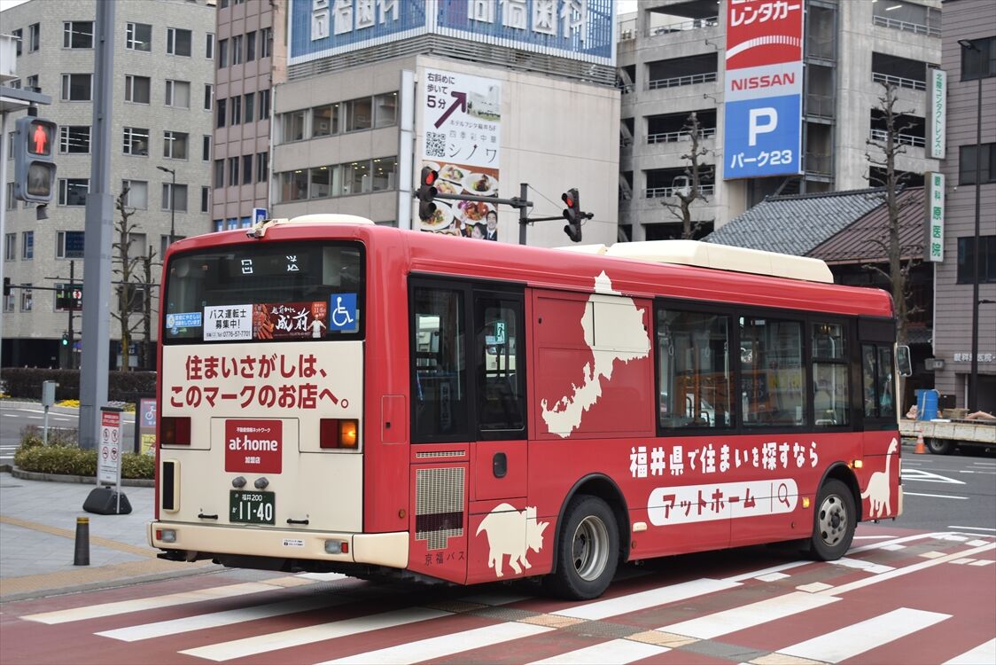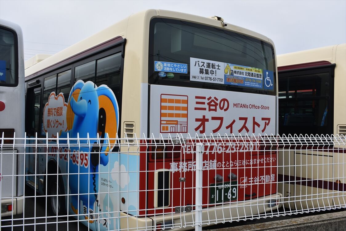 2025年05月25日 すまいるバスEV(京福バス) カテゴリ:北陸 ラッピング車 by wrpgu 2024年春から、福井市のコミュニティバス「すまいるバス」がEV車になりました 4種類あって、一部は後部にラッピングあり 赤色は期間限定で左面のラッピング広告も (2025/3)
