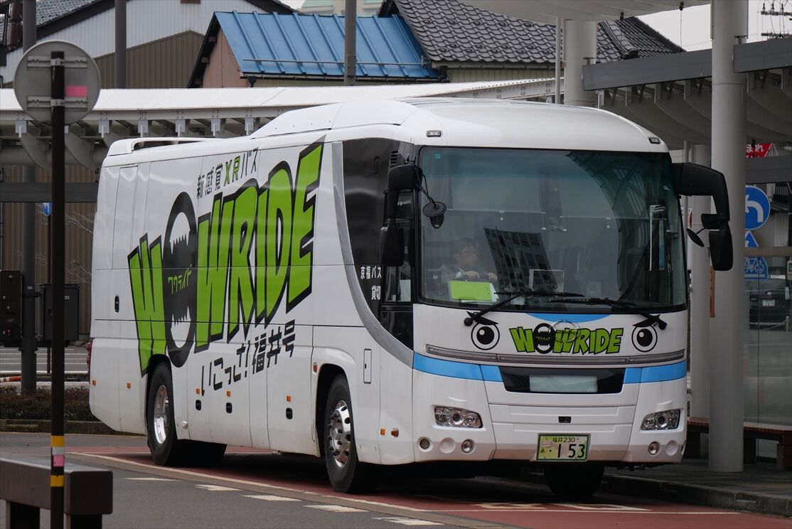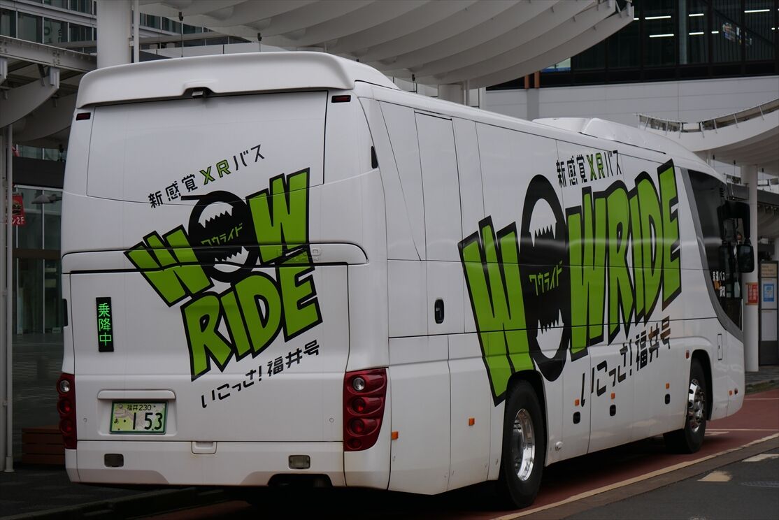 2025年06月03日 いこっさ福井号(京福バス) カテゴリ:北陸 ラッピング車 by wrpgu 福井で危うく忘れる所だった、新感覚XRバス WOW RIDE 「いこっさ!福井号」 ちょうど駅の東口行ったら止まっていたので、思い出して撮影 そして夕方、もう1台にも遭遇 なるほど、2台で、153 291ナンバーにしているとは 2台顔合わせ (2025/3)