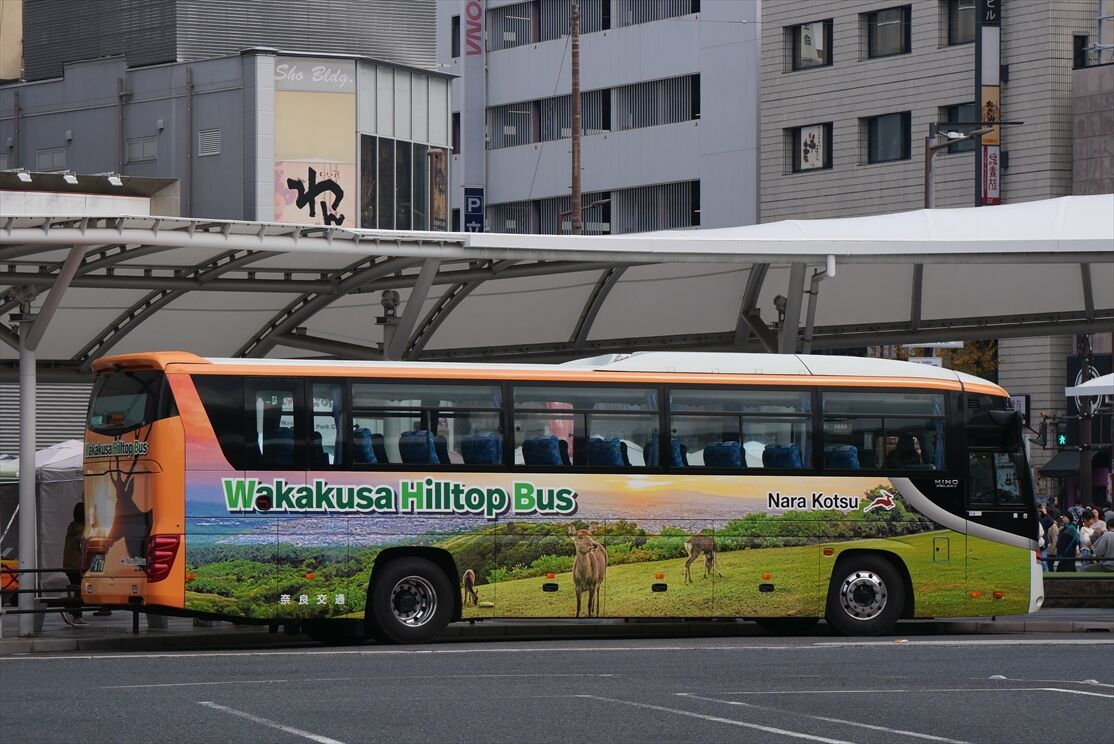 2025年11月19日 Wakakusa Hilltop Bus(奈良交通) カテゴリ:奈良県 ラッピング車 by wrpgu 11月から運行開始となった、若草山山頂への直行バスのラッピングバス いかにも奈良という感じのデザイン (2025/11)