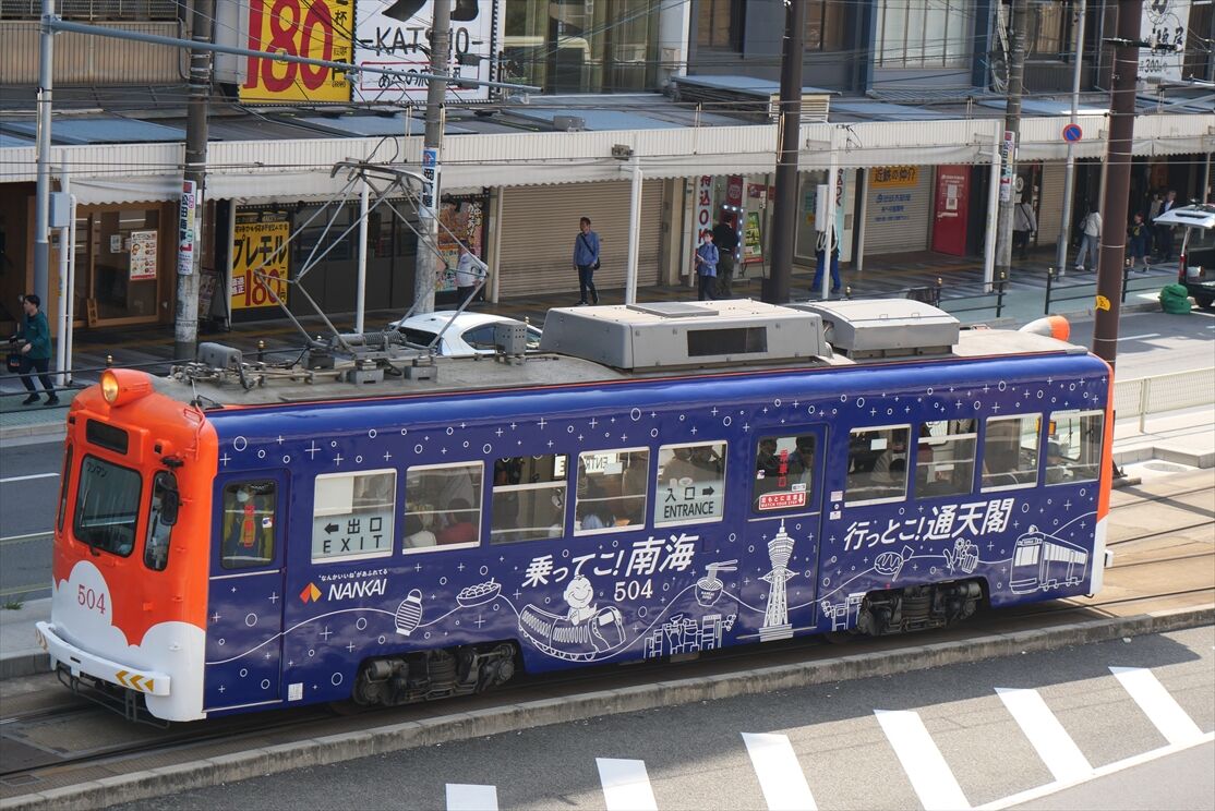 2025年05月08日 通天閣(阪堺電車) カテゴリ:阪堺電車 by wrpgu 春から、南海×通天閣の広告が、南海グループ各社にラッピング広告を出していますが、阪堺電車にも デザインはバスのと基本的に同じ (2025/5)