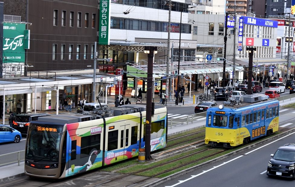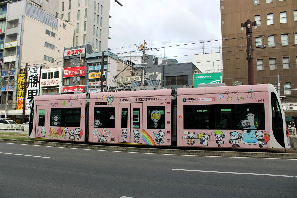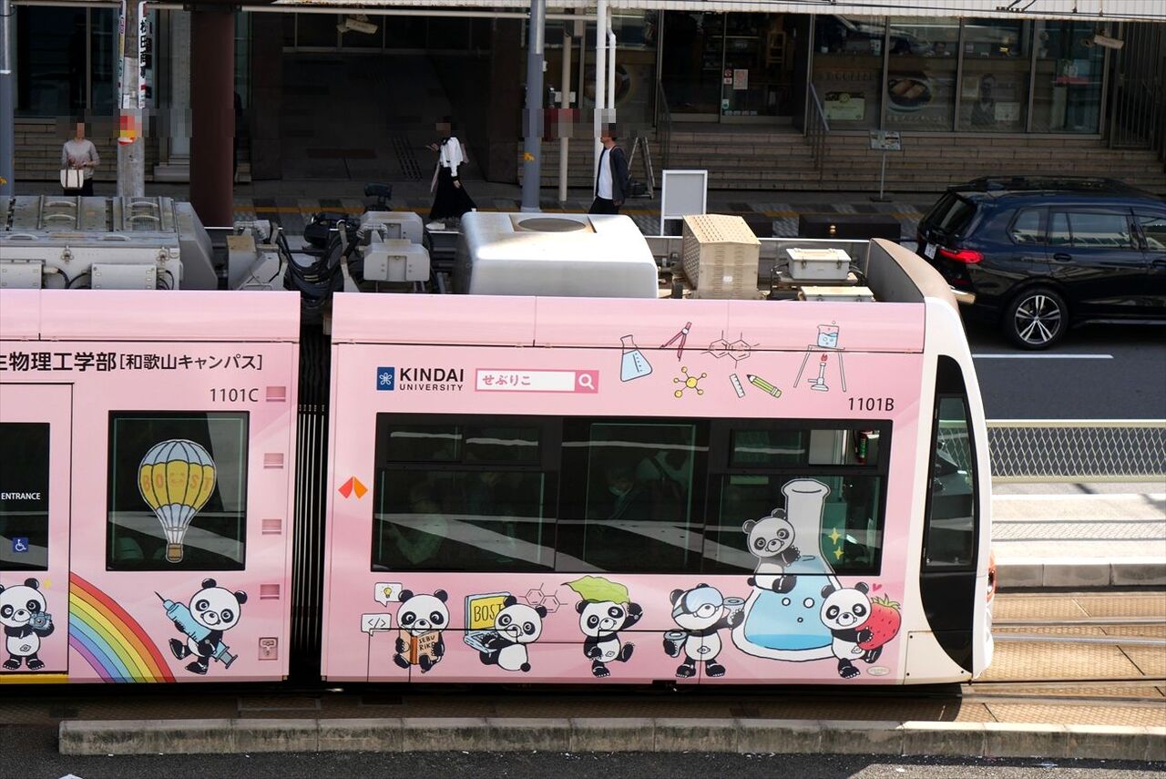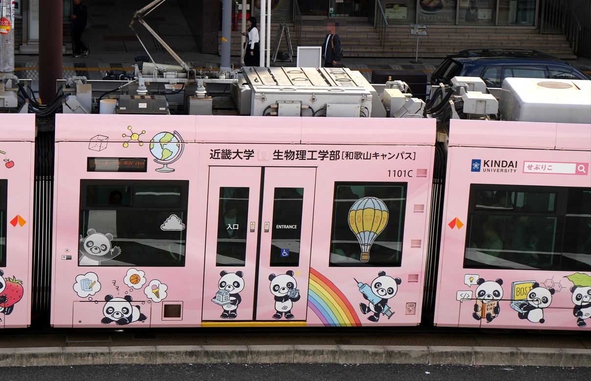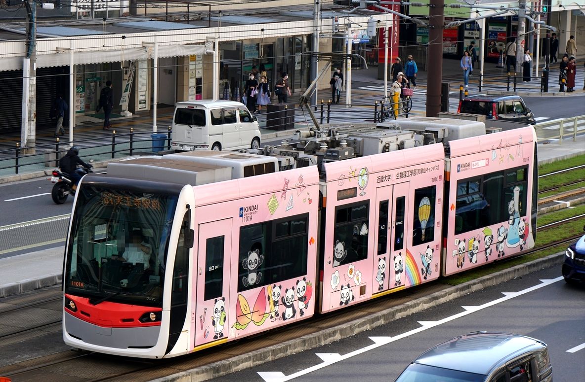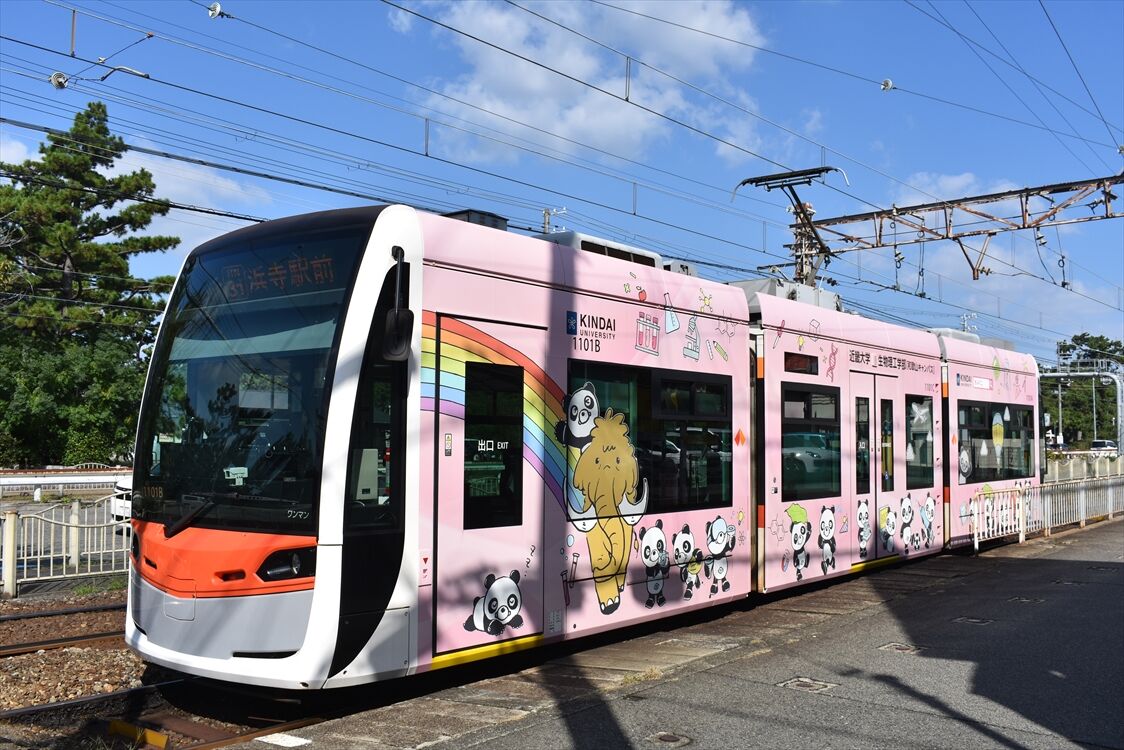 2024年11月03日 近畿大学生物理工学部(阪堺電車) カテゴリ:阪堺電車 by wrpgu 今日は浜寺公園に行くべく、南海電車にしようか、阪堺電車にしようか? 南海は15kmで370円ですか。んー、阪堺にしよう・・・ 天王寺から乗車。その前に、低床車の新ラッピングを撮りたいなと、間もなく来るやつだけに、賭けてみたら、お目当てのが来ました 1本前が浜寺駅前行きだったから、これはあびこ道行きになるのかな 反対側を撮ろうとホームに行ったら、あれ、浜寺駅前行きだ 2本連続で浜寺の時間帯でしたので、これに乗車 終点で反対側も撮影 なお、帰りは南海電車を利用して堺まで 浜寺公園駅、高架化工事のため、仮設ホームでした (2024/11)